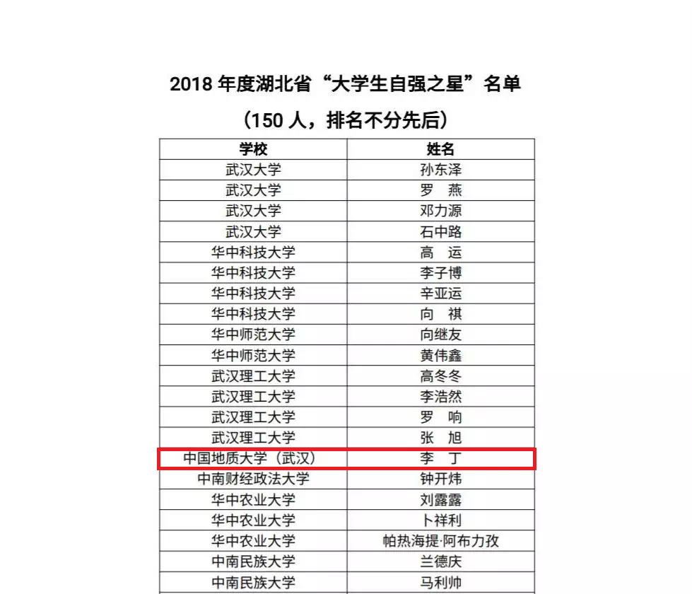 我院本科生李丁获2018年度湖北省“大学生自强之星”并被推荐参加全国评选