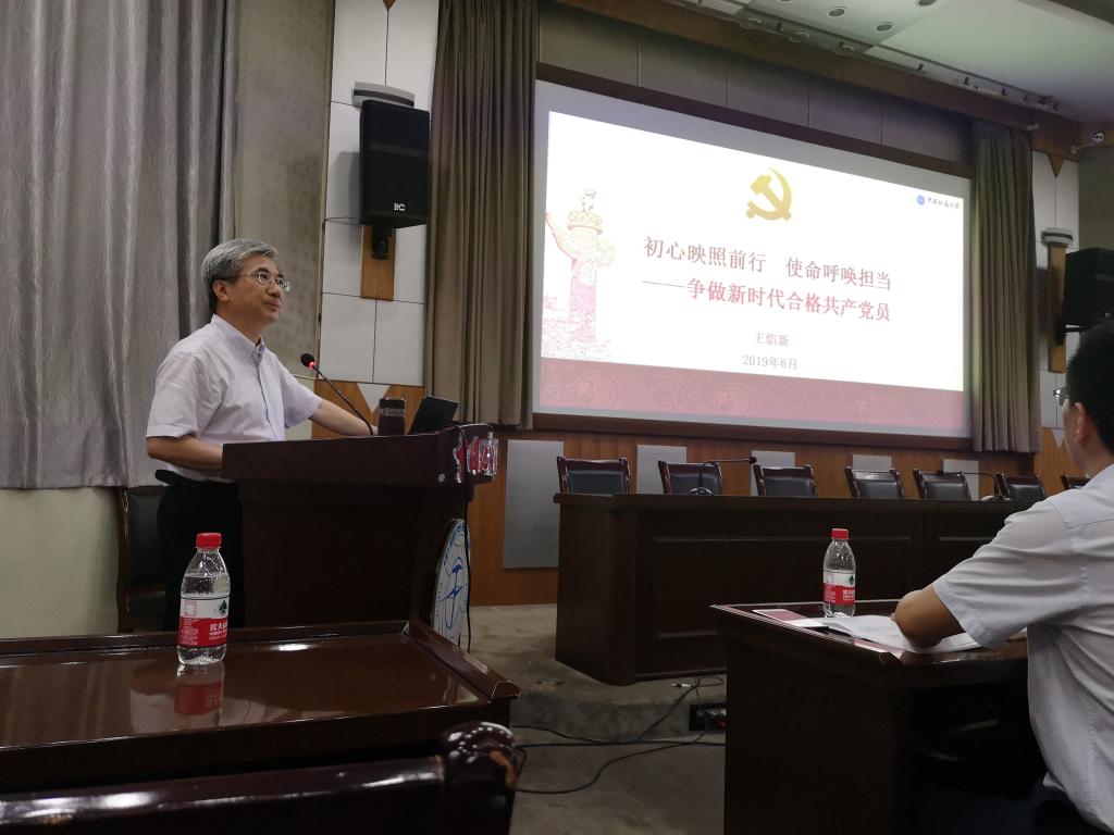 副校长王华为盆地矿产系党员讲授“不忘初心、牢记使命”专题党课