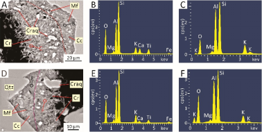 本次研究首次识别出与伊利石颗粒包壳形成演化有关的三种类型自生石英:1)石英次生加大边(Qo):仅发生在包壳缺失或不连续处,沿碎屑石英表面生长;2)伊利石边缘附着石英(Craq):呈短柱状,紧贴伊利石rim生长,晶体大小与边缘厚度同步演化;3)锯齿状石英(Saq):位于伊利石包壳外围孔隙中,晶形规则,常呈锯齿状接触边缘,并逐渐充填孔隙。上述石英胶结的分布和形貌表明,伊利石包壳不仅抑制石英过生长,也成为特定类型石英胶结的“基底”,存在明确的成因联系(图2)。