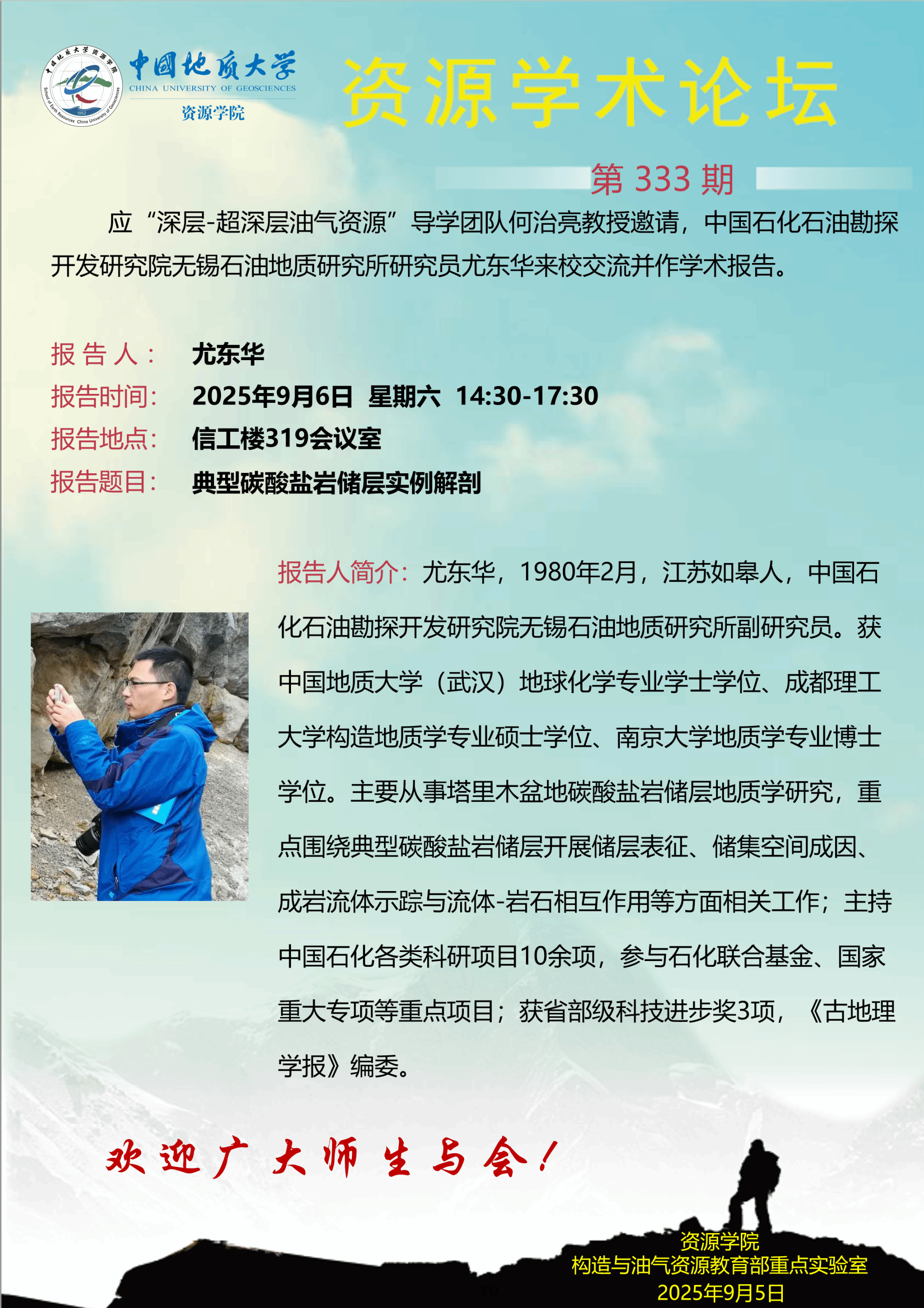 【9月6日】第333期资源学术论坛:尤东华学术报告