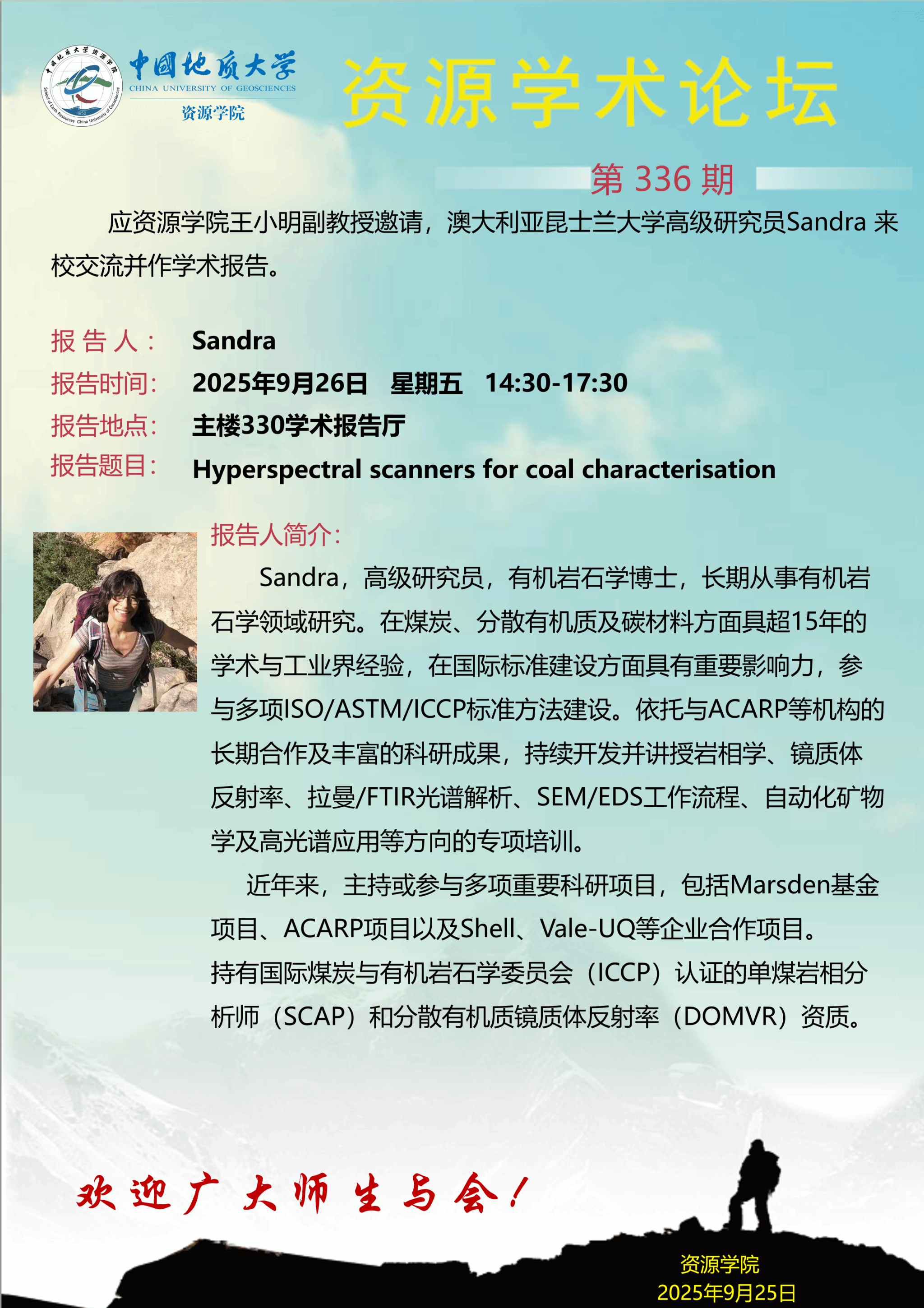 【9月26日】第336期资源学术论坛:Sandra学术报告