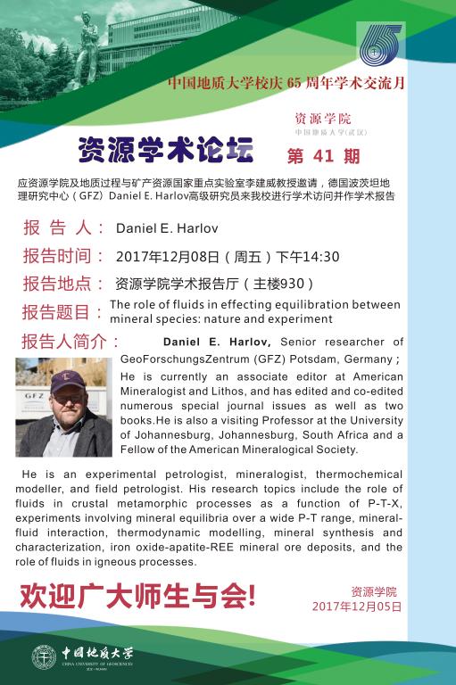 [12月8日]第41期资源学术论坛:Daniel E.Harlov学术报告
