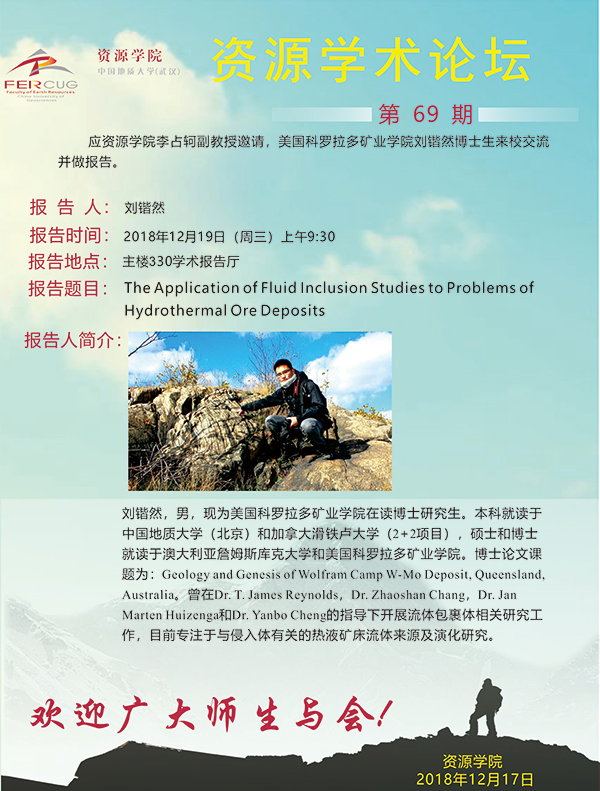 【12月19日】第69期资源学术论坛:刘锴然学术报告