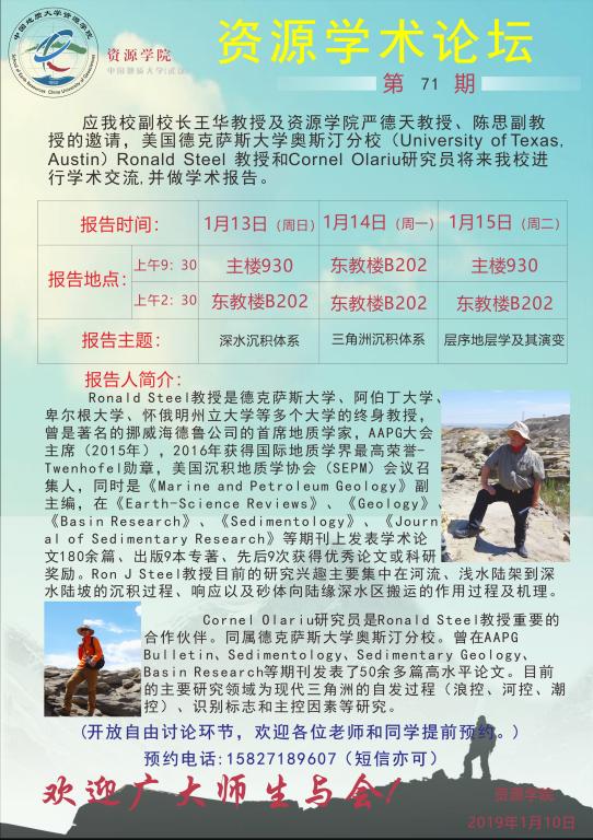 【1月13日-15日】第71期资源学术论坛:Ronald Steel、Cornel Olariu学术报告