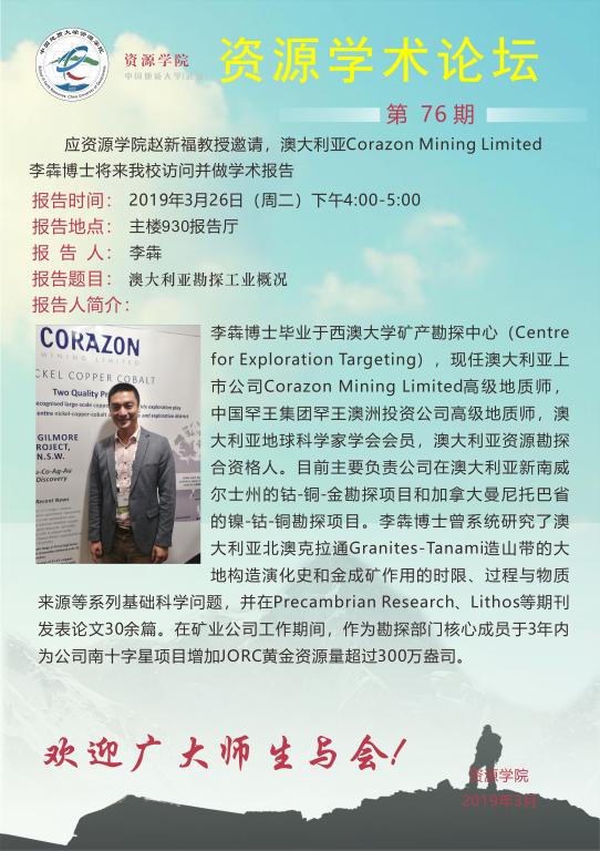 【3月26日】第76期资源学术论坛:李犇学术报告