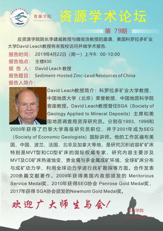 【4月22日】第79期资源学术论坛:David Leach学术报告