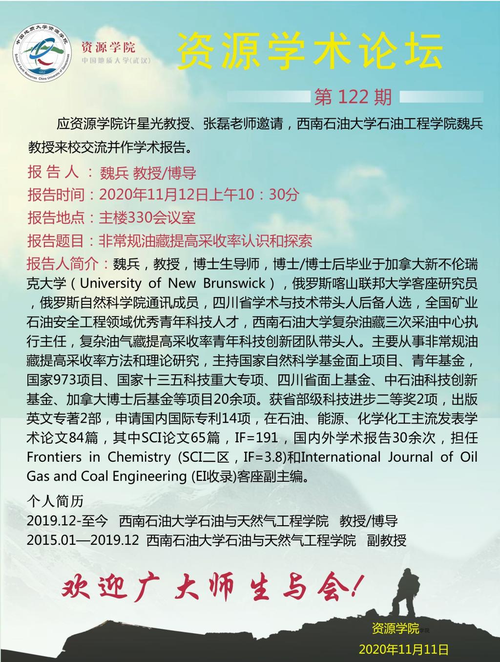 【11月12日】第122期资源学术论坛:魏兵学术报告