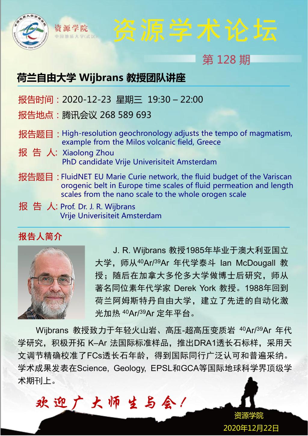 【12月23日】第128期资源学术论坛:Wijbrans团队学术报告
