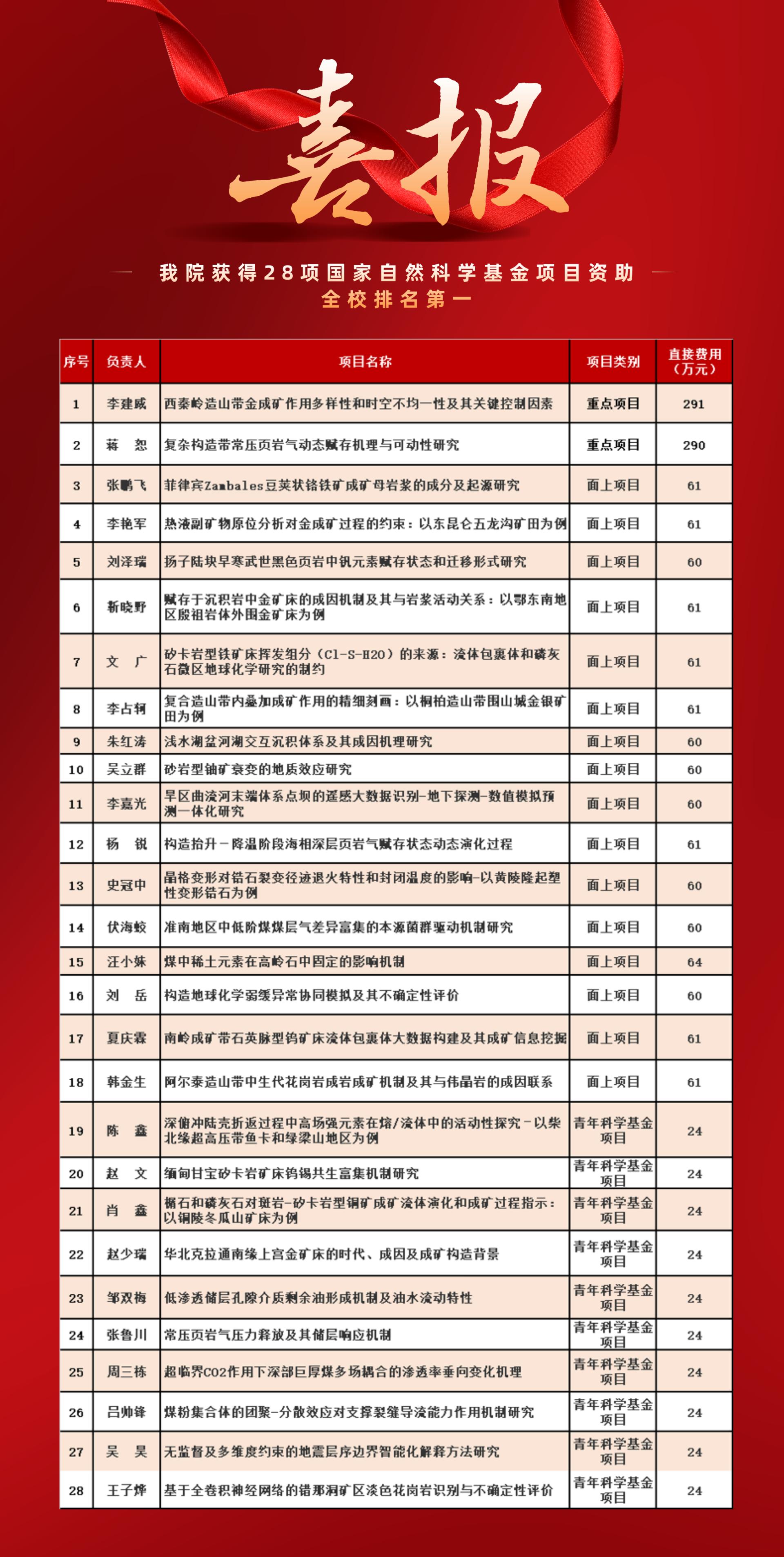 8月18日,国家自然科学基金委员会公布了2021年集中接收期项目评审结果,古天乐太阳集团城共有28个项目获得立项资助,再次刷新资助纪录。其中,重点项目2项、面上项目16项、青年科学基金项目10项,直接资助费用共计1793万元。