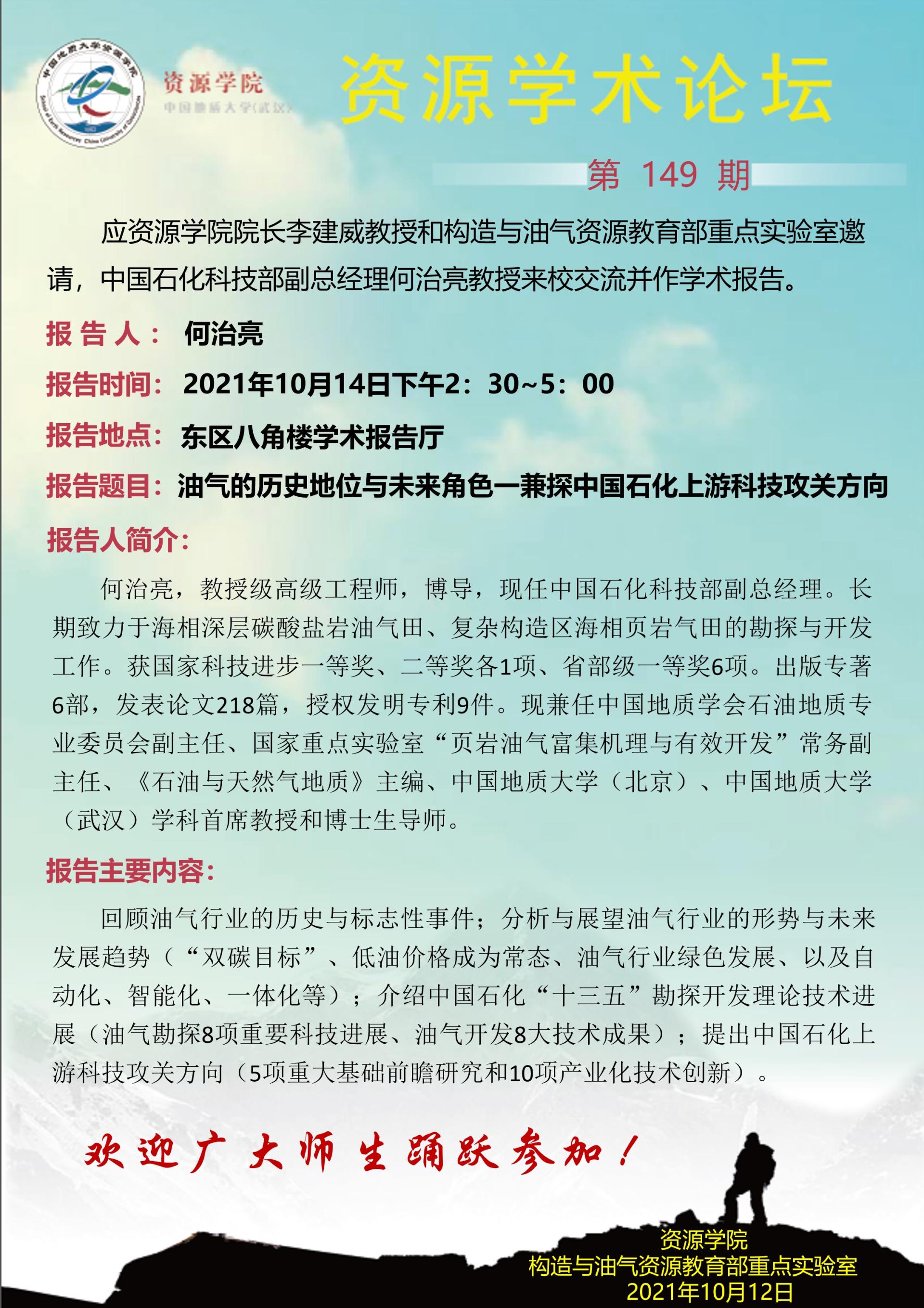 【10月14日】第149期资源学术论坛:何治亮学术报告