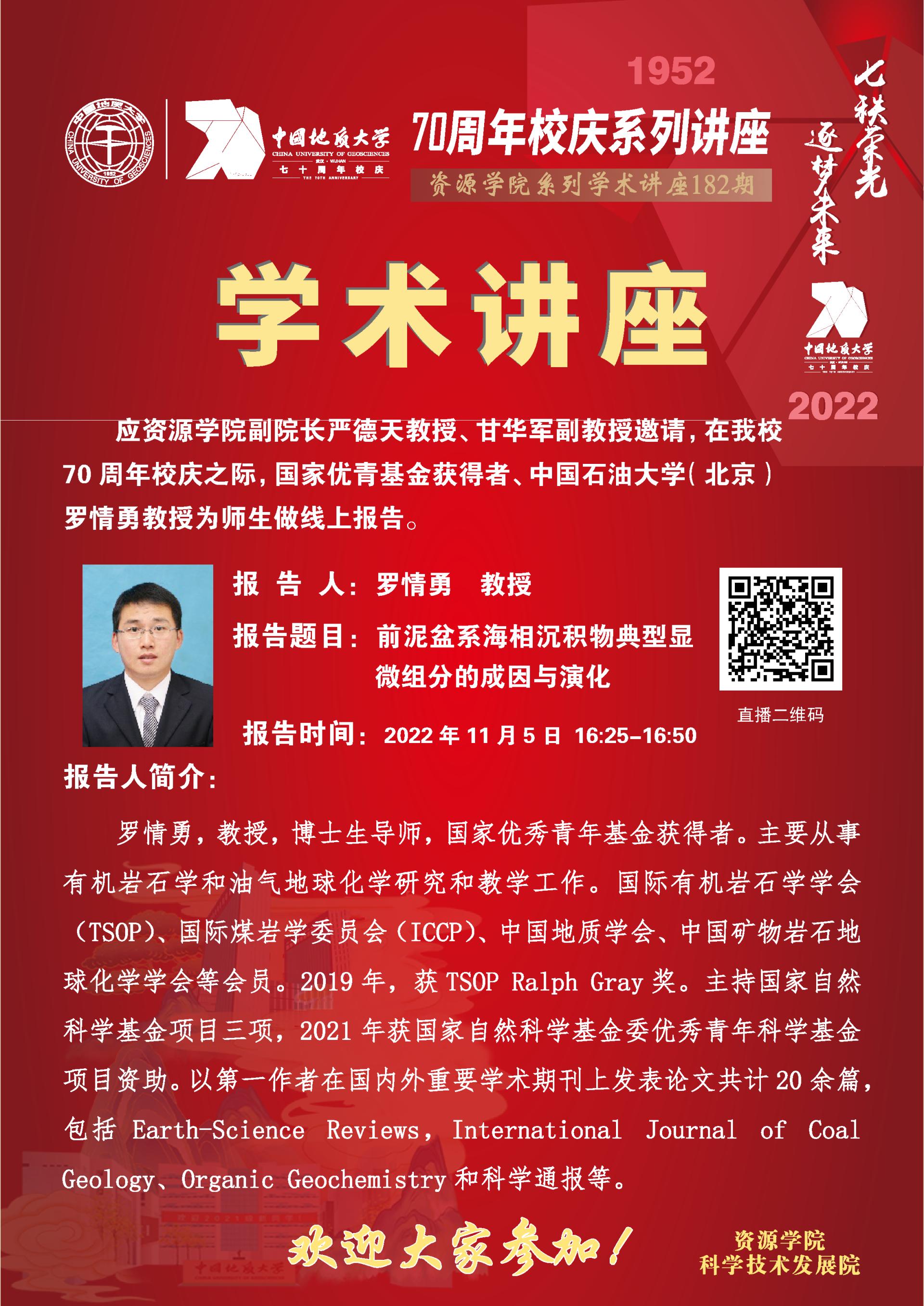 【11月5日】第182期资源学术论坛:罗情勇学术报告