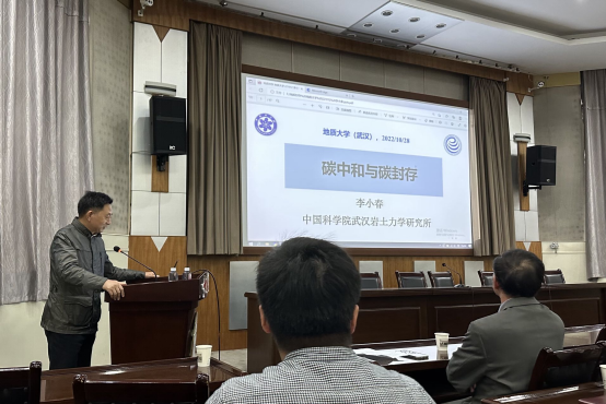 2022年10月28日下午,中国科学院武汉岩土力学研究所李小春研究员应我院邀请,在八角楼学术报告厅作了题为“碳中和与碳封存”的学术报告。报告会由古天乐太阳集团城潘焕泉教授主持。