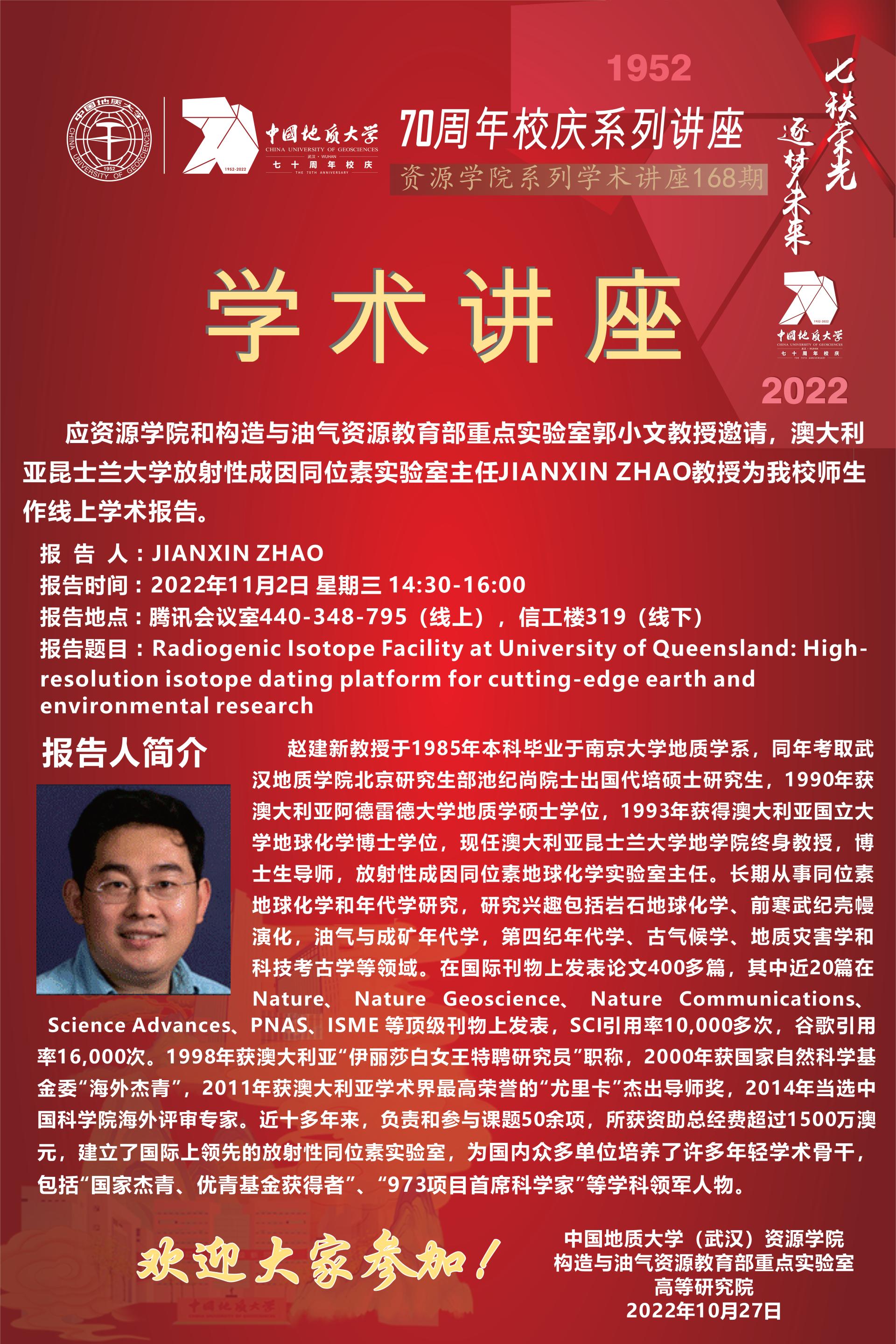 【11月2日】第168期资源学术论坛:JIANXIN ZHAO学术报告