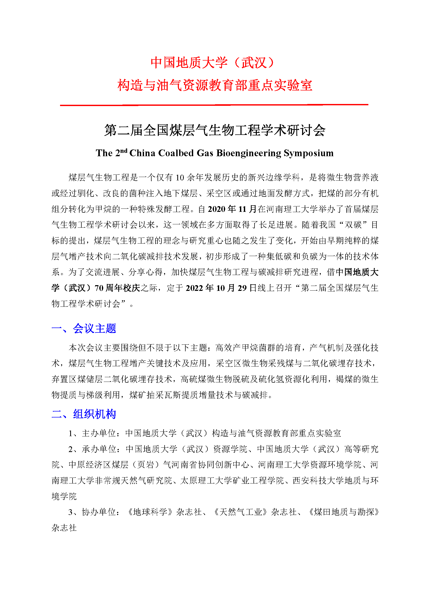 第二届全国煤层气生物工程学术研讨会通知