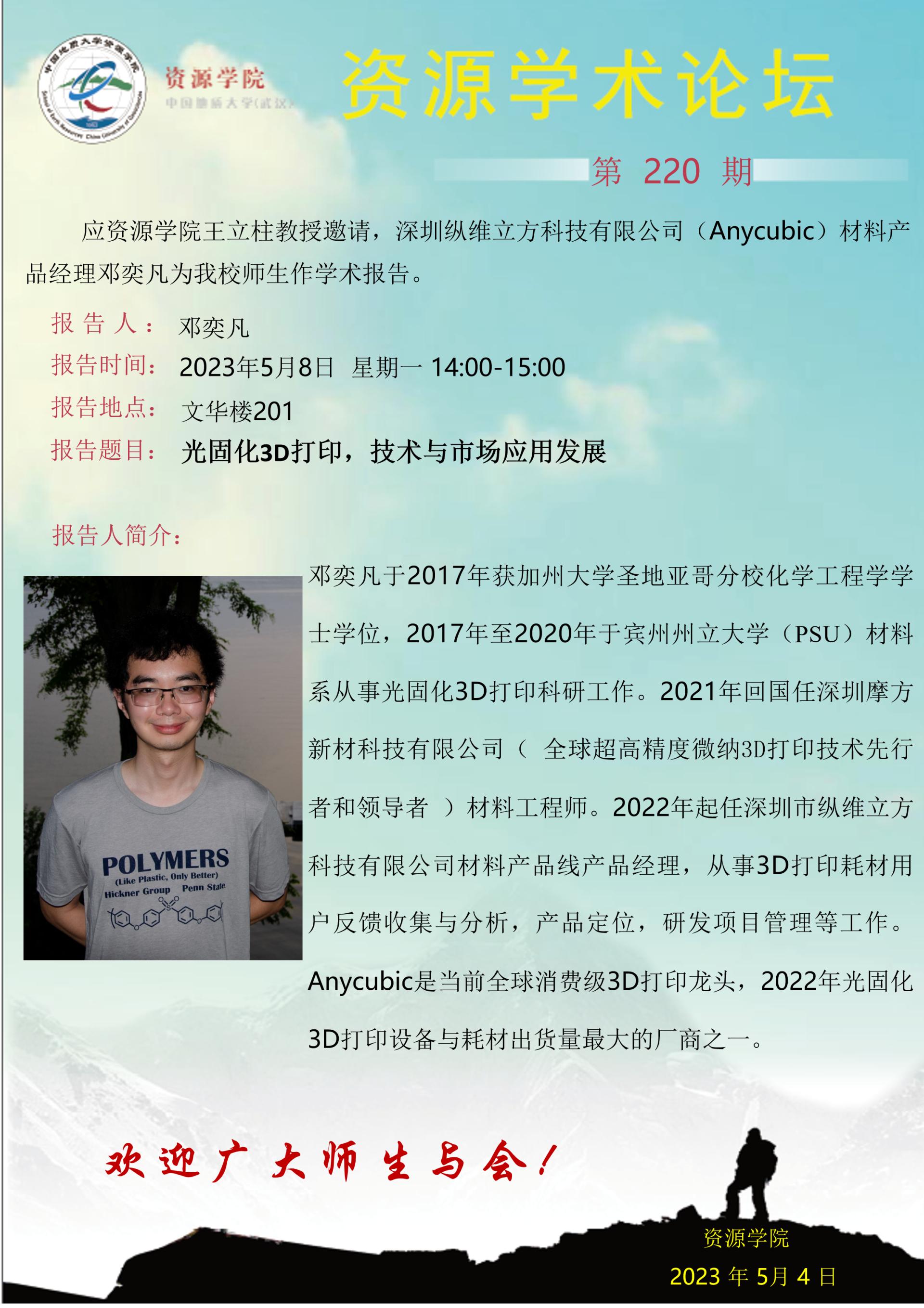 【5月8日】第220期资源学术论坛:邓奕凡学术报告