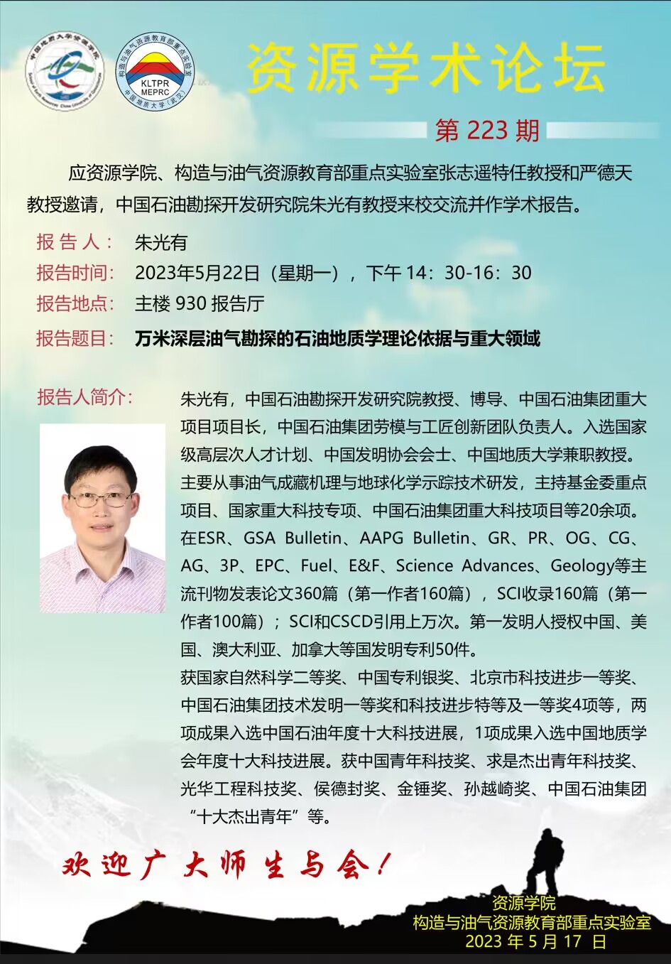 【5月22日】第223期资源学术论坛:朱光有学术报告