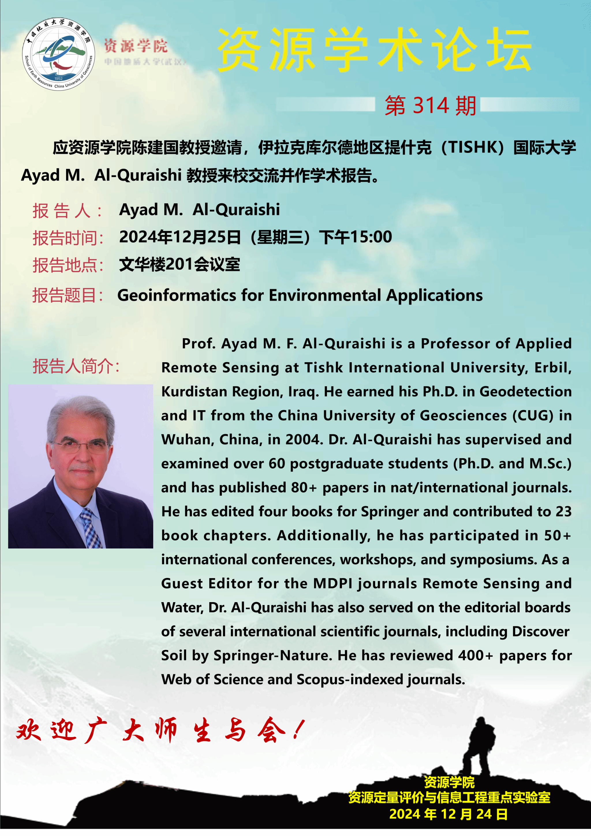 【12月25日】第314期资源学术论坛:Ayad M. Al-Quraishi 学术报告