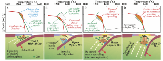 详细内容见论文:Zhang, PF., Zhou, MF., Robinson, P.T., Malpas, J., Yumul Jr, G. P., Wang, C.Y., & Li, J. (2024). Diversities of chromite mineralization induced by chemo–thermal evolution of the mantle during subduction initiation. Nat. Commun. 15, 9385. https://doi.org/10.1038/s41467-024-53508-7.