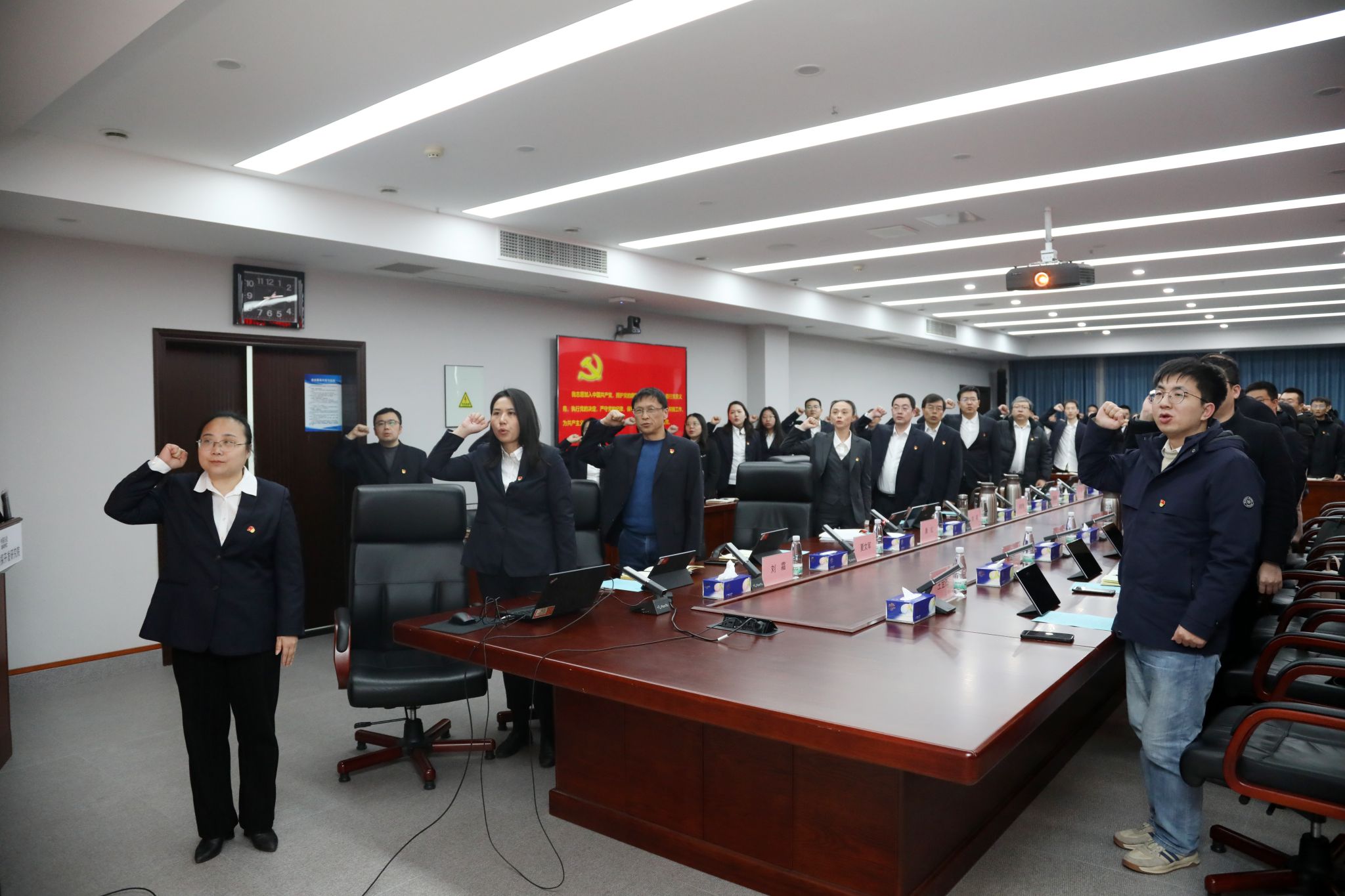 在研究院天然气开发所党支部书记康红同志带领下,全体党员庄严重温入党誓词。