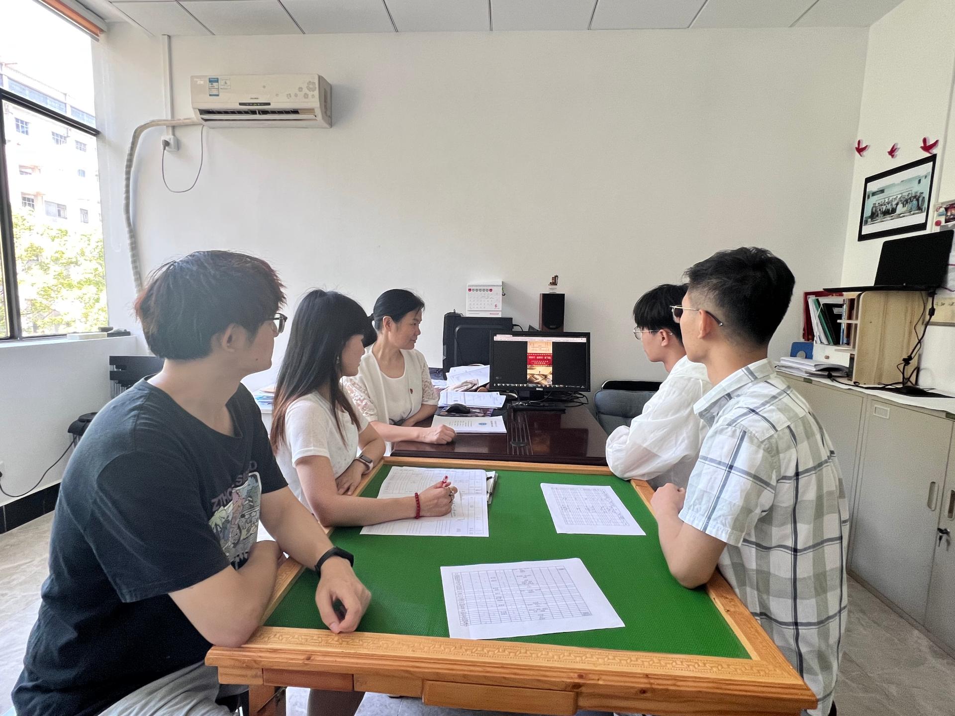 学生党建指导组组长谢丛姣组织专题讨论。她指出,这是学院进行学生党支部设置调整后党小组开展的第一次学习活动,推动党建业务深度融合,是开展高质量党建的重要举措,要结合“三会一课”制度常态化开展,持续发挥师生党支部“立方”建设,开展示范创建和质量创优。
