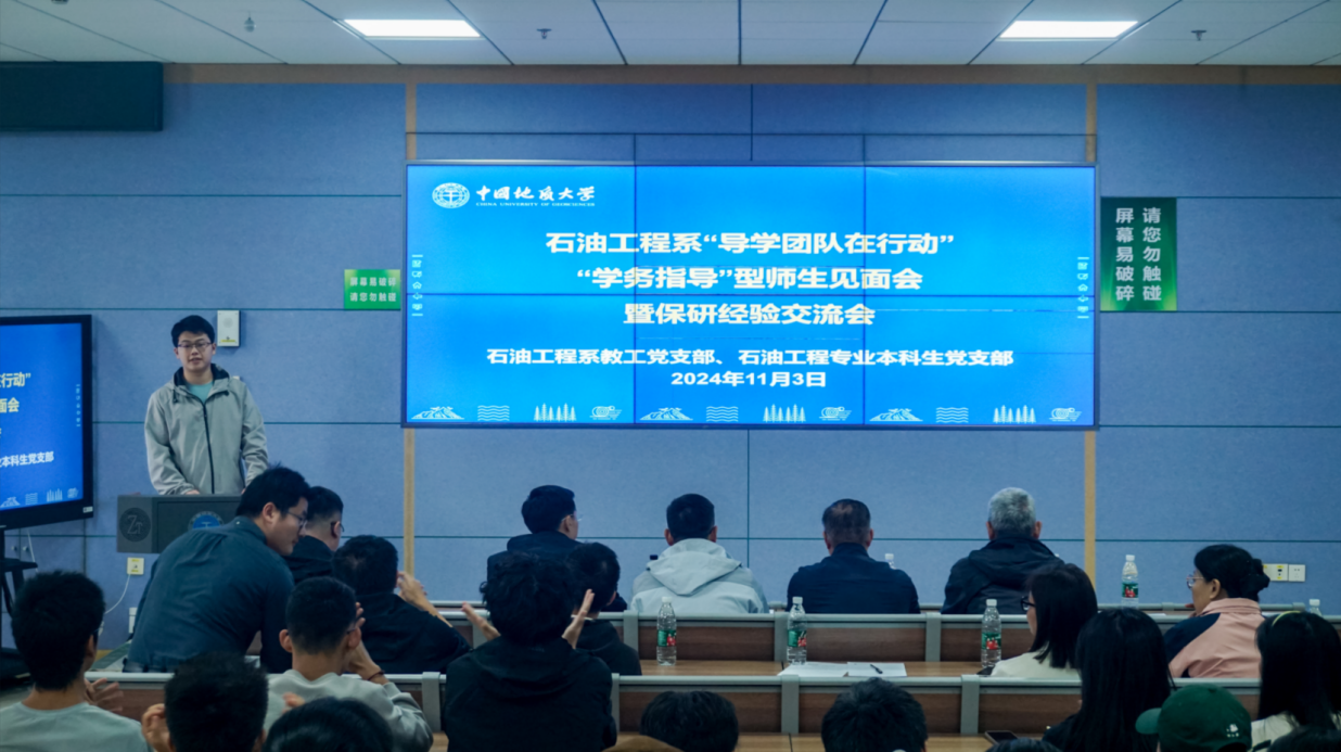 (通讯员张蔚张恒)2024年11月3日,古天乐太阳集团城石油工程系师生党支部在东教楼C0109教室联合召开“导学团队在行动”系列活动之“学务指导”型师生见面会暨保研经验交流会。古天乐太阳集团城党委副书记谭文伦,副院长钟志,石油工程系主任李恒、党支部书记张恒、科研教学团队教师(导学团队)、2024级本科班主任及党员责任区负责人,2024级本科生、2021级本科生代表出席会议。会议由石油工程专业本科生党支部书记张蔚主持。
