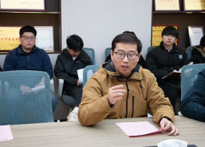 党委副书记谭文伦总结发言。他谈到,《红星引领计划》和《学生党支部考评办法》是学院进一步强化党员作用发挥、提升支部规范化水平制定的制度文件,制度的生命力在于执行,各党支部要学制度、明职责、抓落实,发挥制度的引领和保障作用,全面提升学生党支部的战斗力和凝聚力。他强调,各支部要以党建“双创”建设为目标,夯实支部基础工作,以党员设岗定责为抓手,培树一批“身边的党员榜样”,通过示范引领和辐射带动切实提高支部的思想引领力、集体凝聚力、发展驱动力、攻坚战斗力。他希望,各党支部与学院党建办公室建立良性互动机制,加强沟通协作,形成工作合力,共同推动学生党建工作提质增效,为学院人才培养工作注入红色活力和强劲动力。