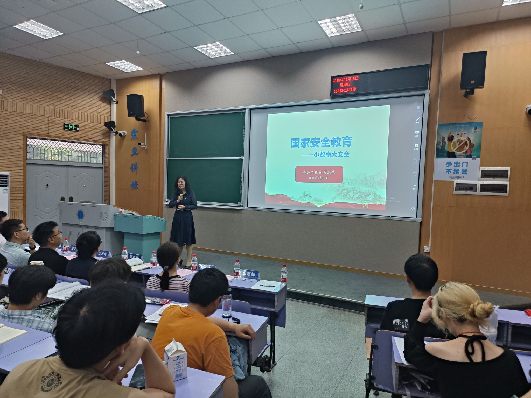 全国高校首批“双带头人”教师党支部书记工作室负责人、石油工程系教授谢丛姣以“国家安全教育-小故事大安全”为主题,围绕能源安全、网络安全、数据安全等多个重点领域,通过亲身经历与典型案例阐述了“安全无小事”。她强调,在科研、实习、资料处理等方面要严格遵守规章制度和纪律,对信息重要性程度保持强判断力,对重要信息保持高敏锐度。