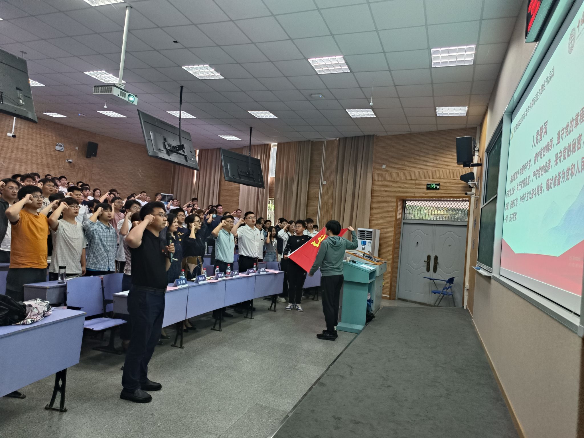 古天乐太阳集团城党委书记汪再奇带领全体参会人员重温入党誓词。