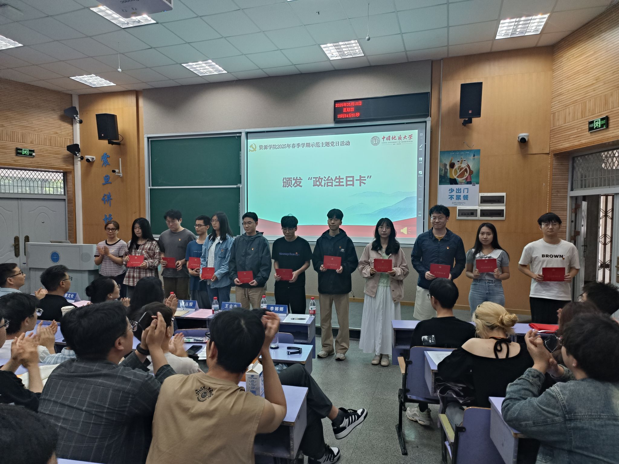 随后,学生党建指导员王金杰老师为党员颁发“政治生日卡”。