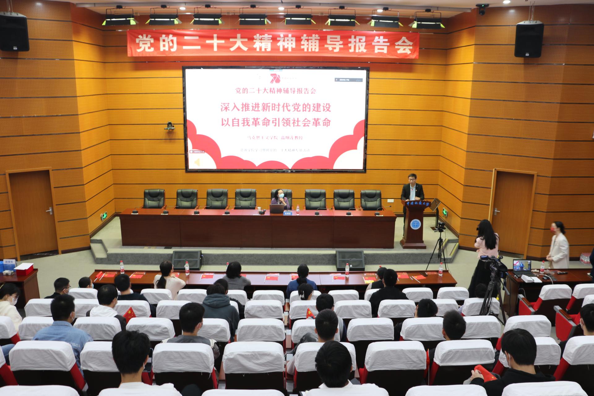 11月12日,古天乐太阳集团城举行党的二十大精神辅导报告会,马克思主义学院高翔莲教授应邀作专题辅导报告。学院院直党支部成员,学生党员,第二十七期入党积极分子培训班学员线上线下参加报告会。党委副书记谭文伦主持会议。