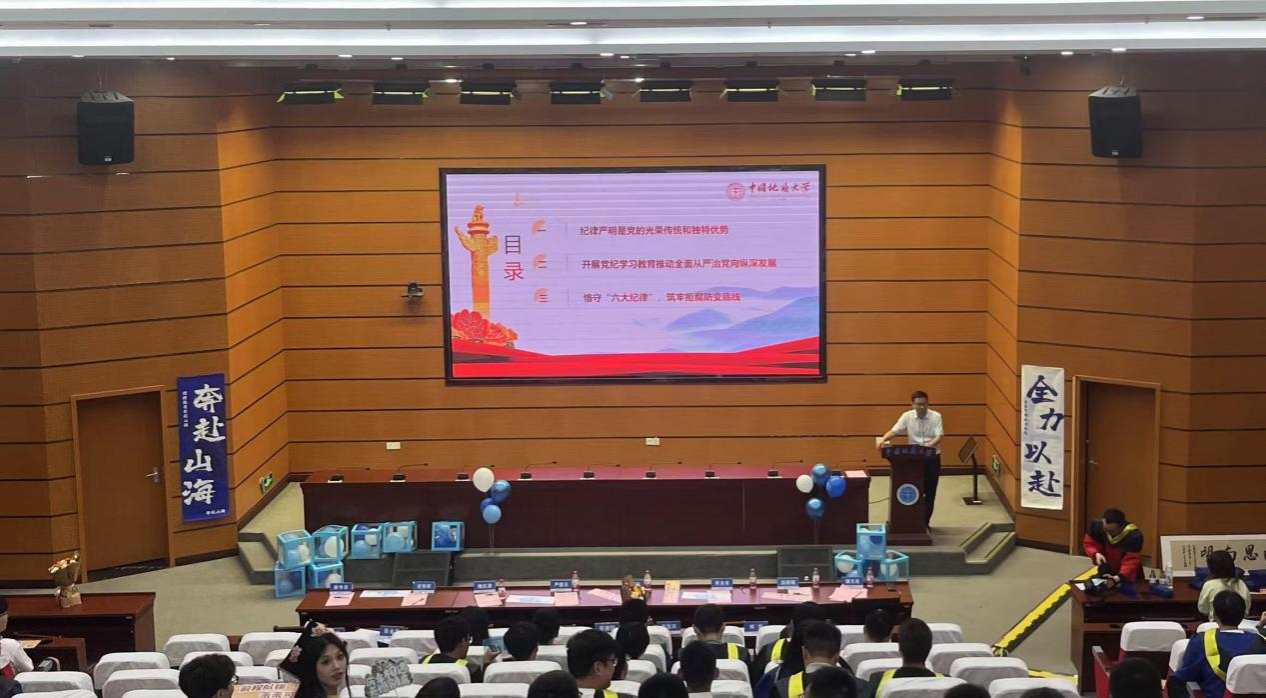 最后,谭文伦鼓励同学们将党纪学习教育成果转化为砥砺奋进的强大动力,持之以恒、久久为功,立足本职岗位,在遵守和执行纪律中始终走在前、作表率,真正让党纪学习教育落地生根,用青春实践为中国式现代化挺膺担当。