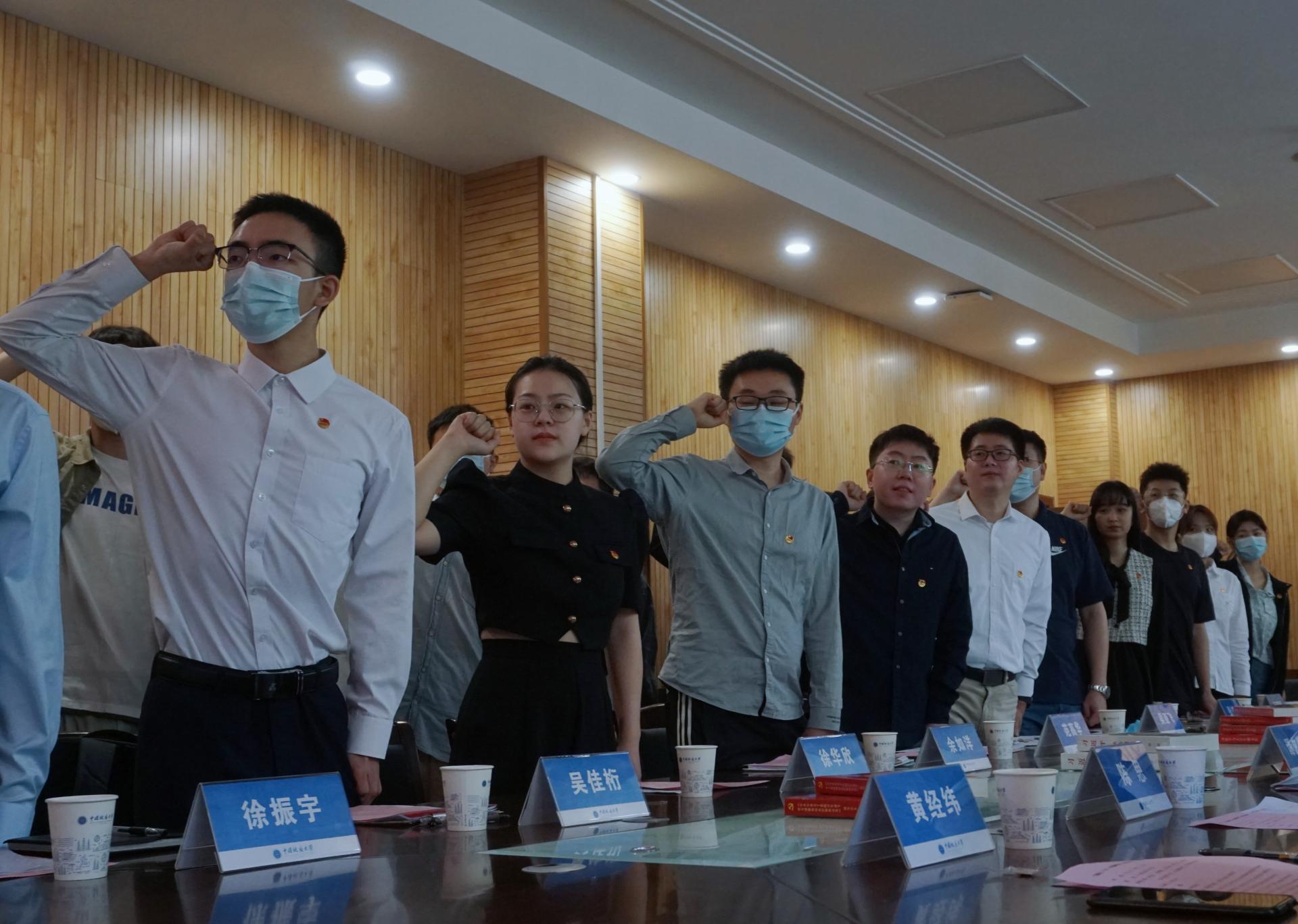 会议在激昂的团歌中拉开序幕,学院团委书记刘明辉带领新入团团员宣誓、老团员重温入团誓词。