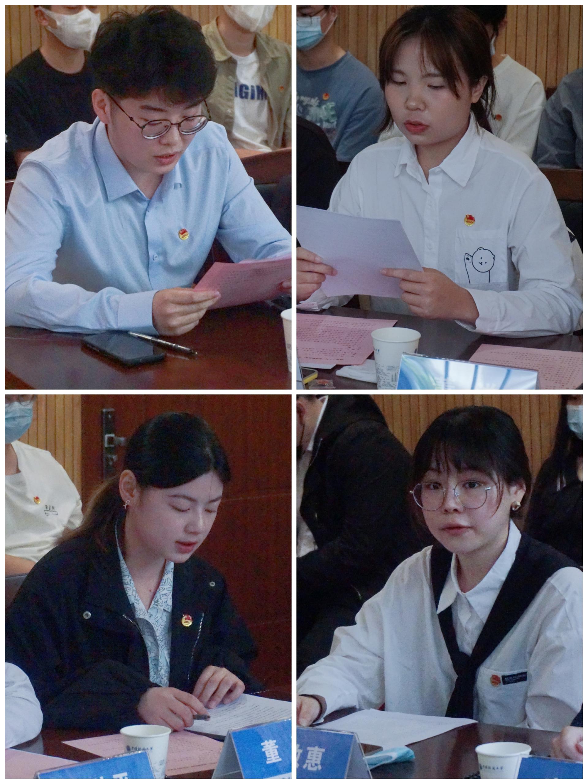 13名青年教师代表、本硕博学生代表、团学骨干代表结合各自工作和学习经历,围绕主题畅谈了学习总书记重要讲话精神的心得与体会,弘扬五四精神。青年教师代表表示,大学教师要将教学和科研相统一,坚持立德树人,把论文写在祖国大地上。青年学生代表讲到,要追求卓越、脚踏实地、大胆质疑,夯实专业基础,攀登地质高峰,努力成长为资源能源领域创新型人才。团学骨干代表谈到,团学工作要紧密围绕学院事业发展和同学现实需求,坚持为公与修己相统一,在服务奉献中收获成长、收获幸福。团委书记刘明辉简要介绍了学院共青团过去一年来服务青年工作总体情况。