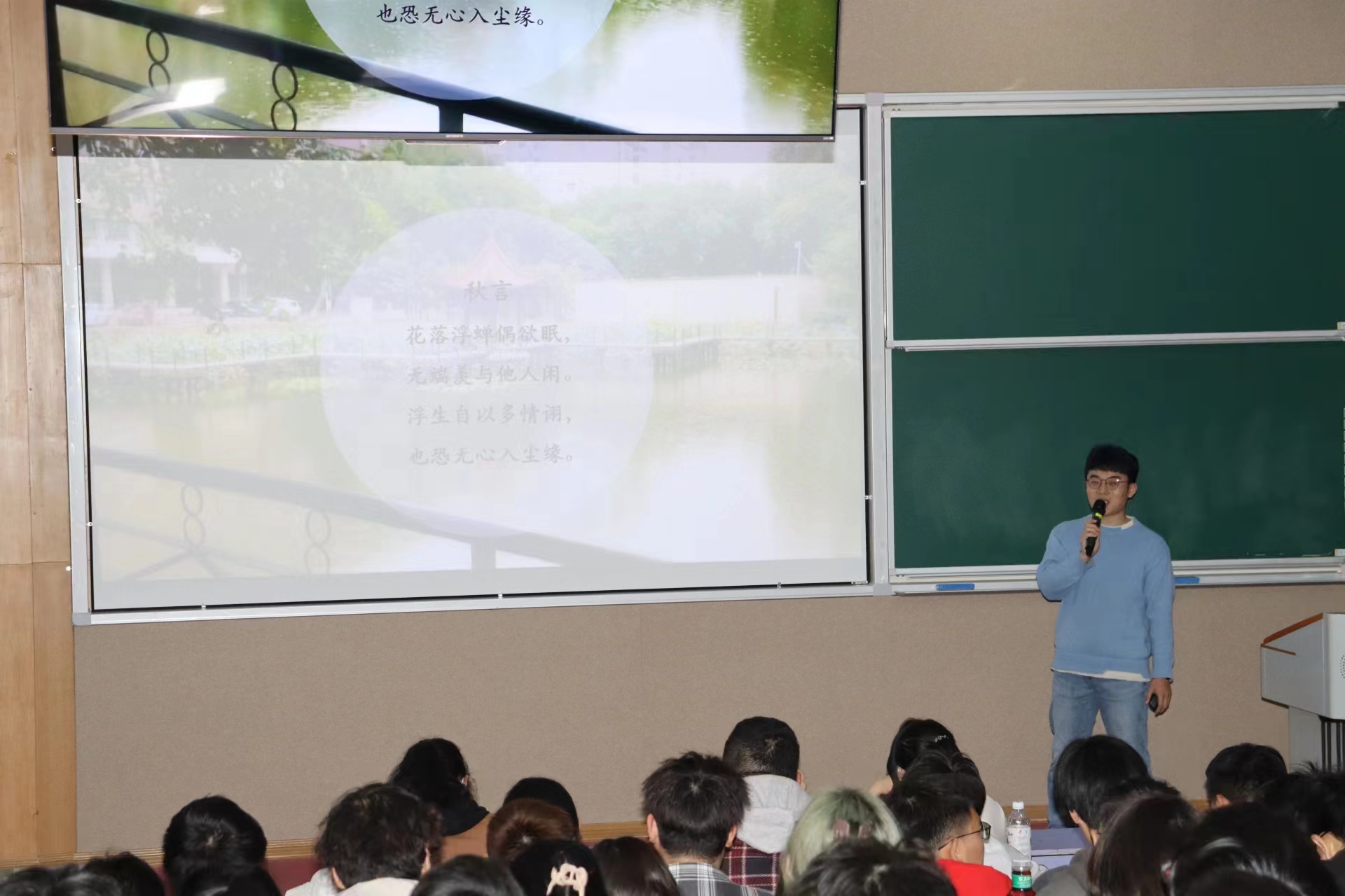 “行走山水间,求索地质人”,他为同学们介绍丰富多彩的地质实习活动,描述在巍峨山川间的秀丽美景,在潺潺流水间的热情坚守。地质人的热情寄托于山水,同时寄托于诗词。不论是野外实习,还是参加比赛,写诗成了他放松身心、记录生活的一种方式。“即将此生许地质,何惧群山水迢迢。”便是他的地质情怀。