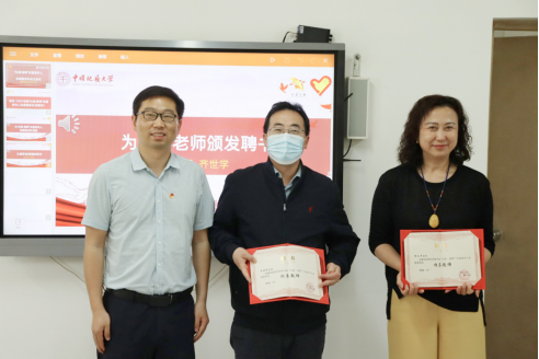 谭文伦为志愿服务队指导老师颁发聘书。