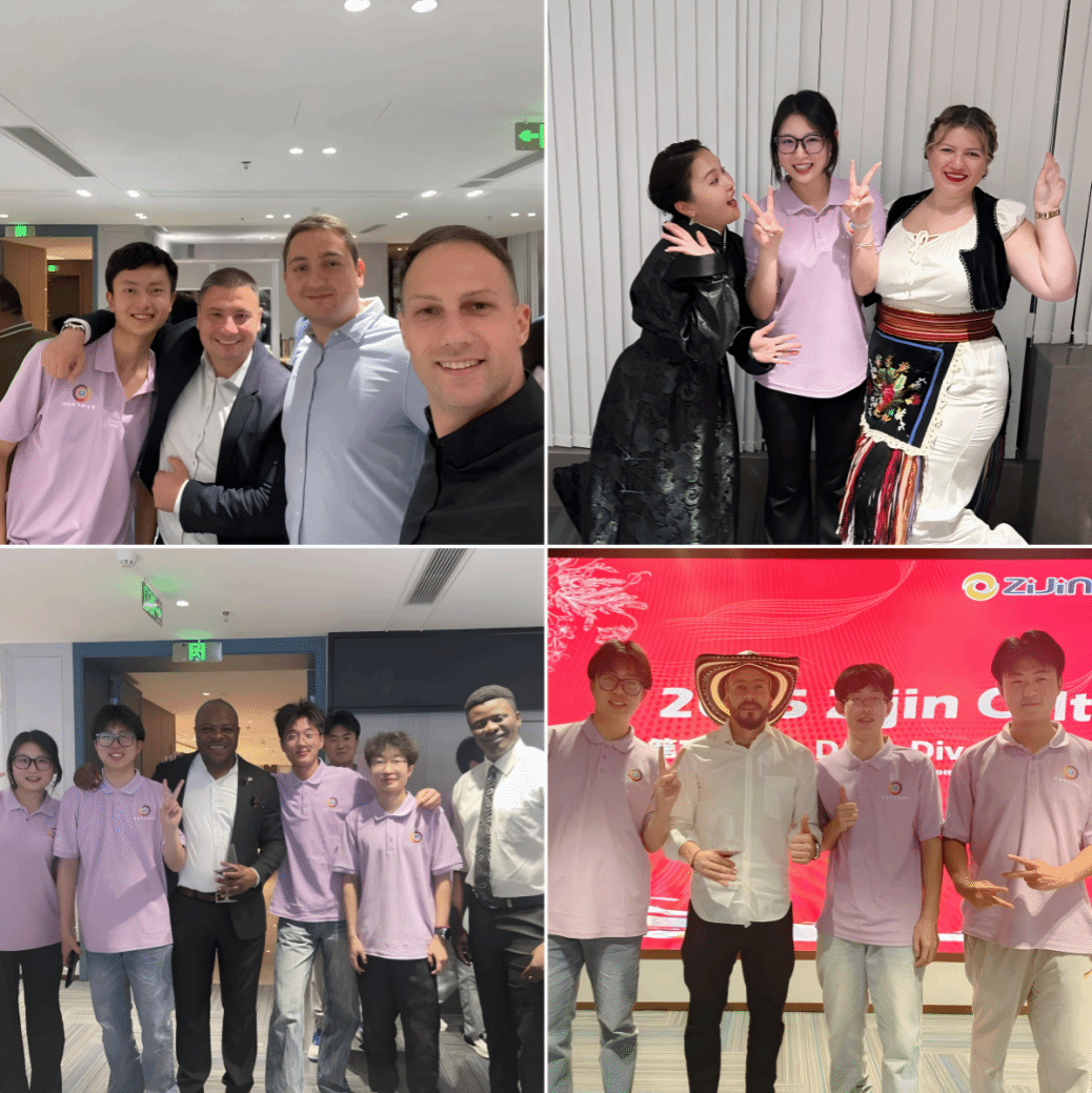 晚宴结束前,同学们纷纷收到了外籍员工亲笔书写的多语言寄语卡片。“愿你们成为未来的矿业全球使者”等真挚的话语,寄托了对新时代矿业人才的殷切期望,彰显了紫金矿业对国际化人才培养的高度重视。
