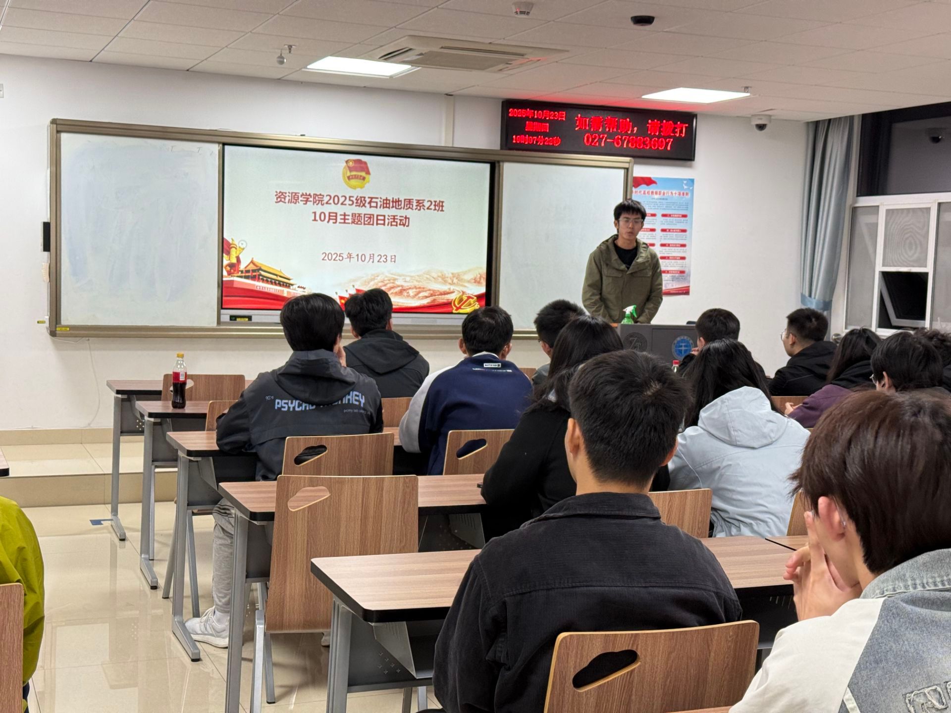 10月23日,石油地质系二班研究生团支部全体成员,以“礼赞辉煌成就,续写时代华章”为主题展开主题团日活动。活动中,团支部成员通过手写“家国心愿卡”,表达对伟大祖国的祝福之情。