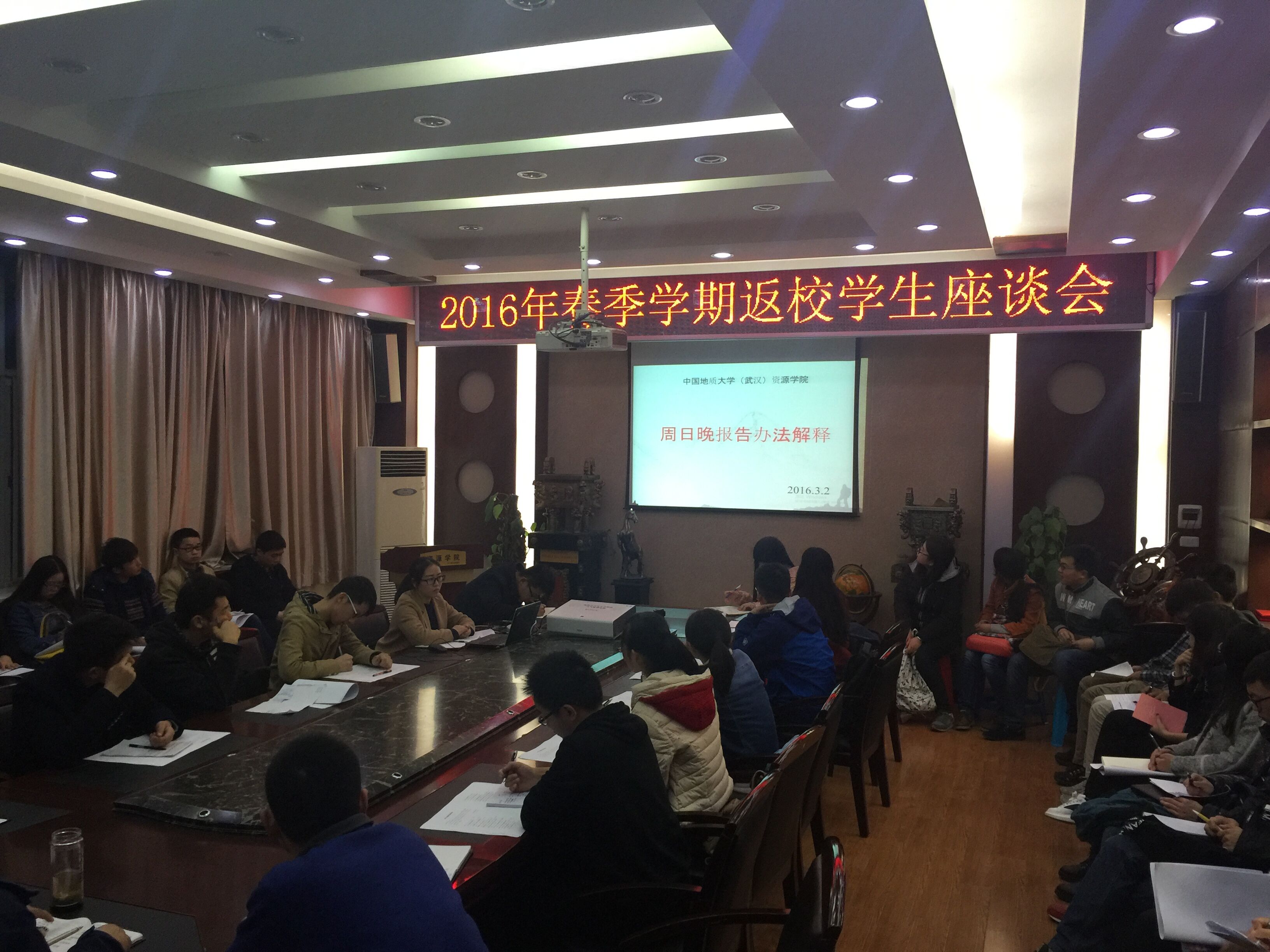 (通讯员王向东)为准确把握学生寒假返校后的思想动态,明确新学期学生思想政治教育工作的重点和关键。古天乐太阳集团城于2016年3月2日在主楼328学术报告厅召开了寒假返校学生思想动态调研座谈会,与来自部分学生代表及各班安全信息委员等进行深入交流。院党委副书记张建华主持会议。