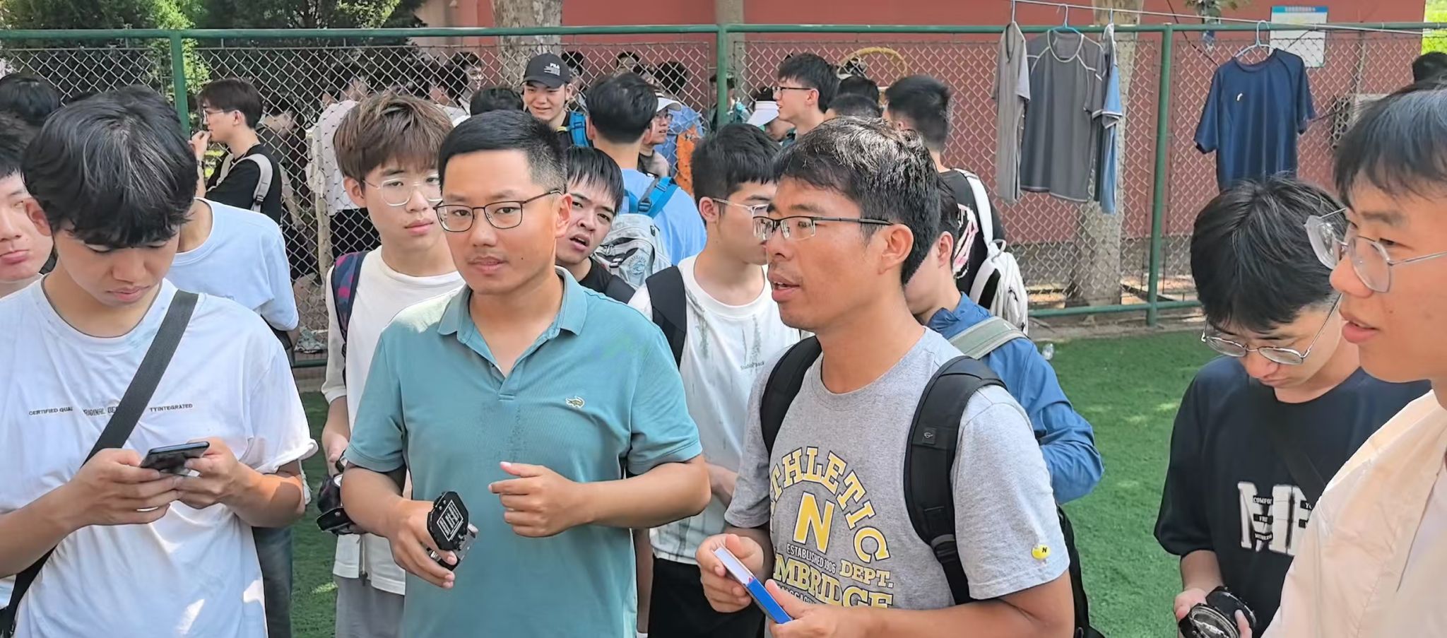 集中教学结束后,由带队老师带领各班级到操场进行分班教学,在老师们的指导下,同学们进行罗盘使用实操训练,调校磁偏角、测产状、测方位……同学们认真聆听、不断尝试,并进行实际操作演示。