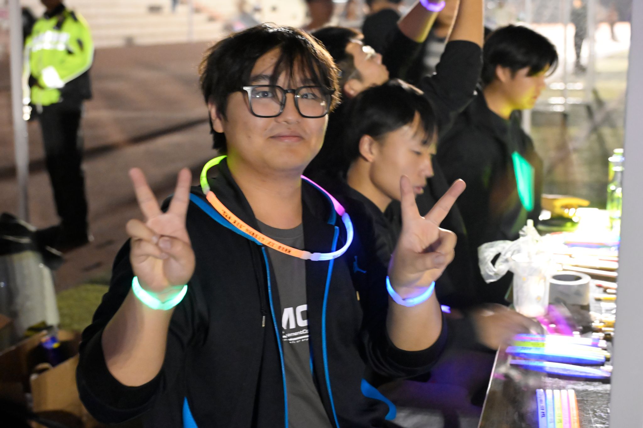 19:00,随着主持人的一声令下,荧光夜跑正式启航。操场上,一条条荧光手环在夜色中闪烁,犹如点点繁星,照亮了青春的跑道。大家你追我赶,互相鼓励,共同完成了夜跑挑战。