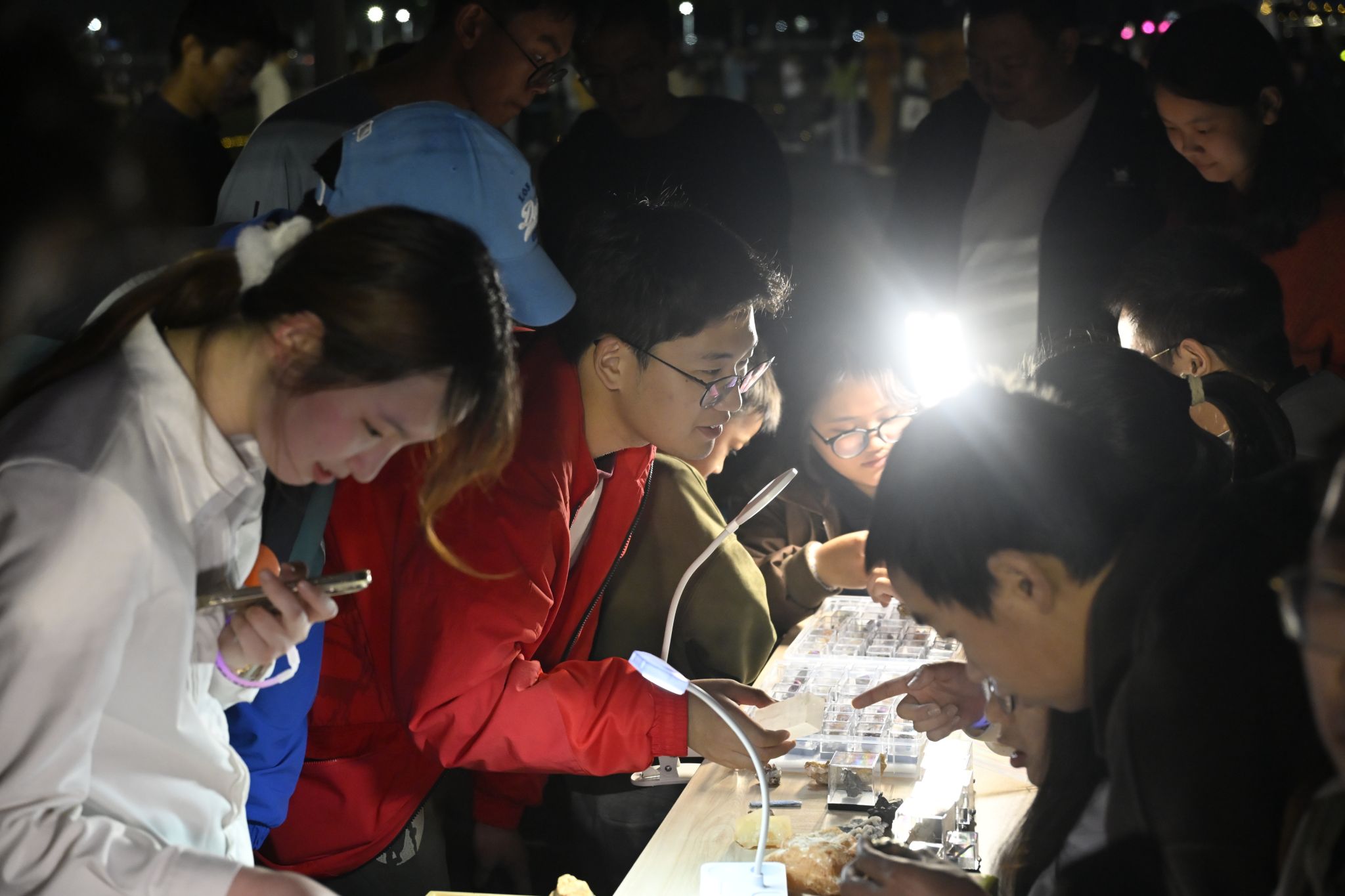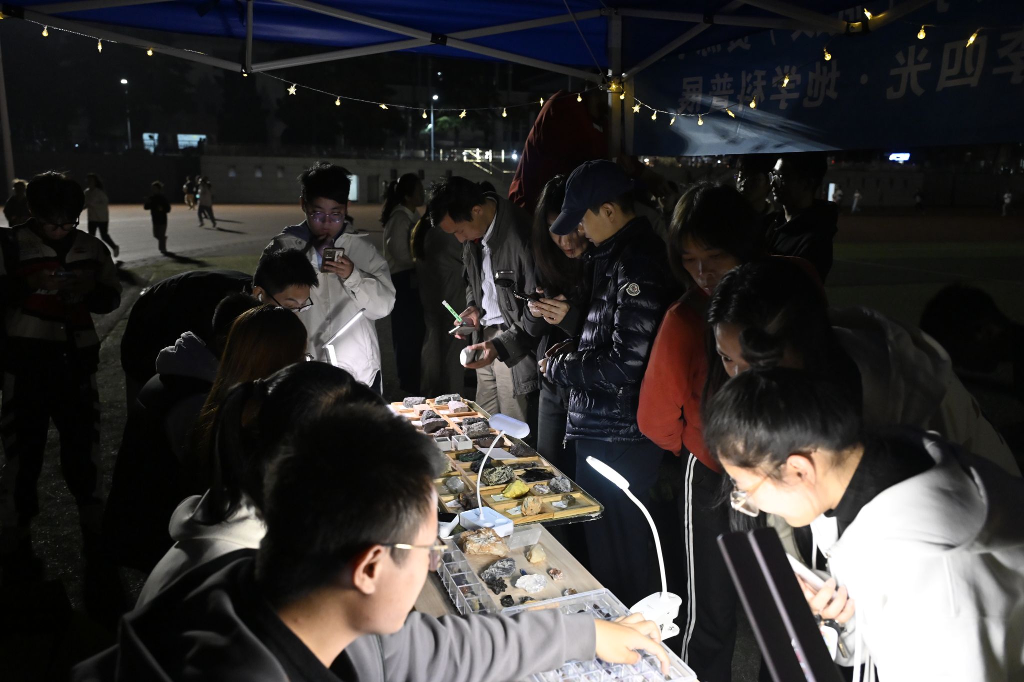 在地学科普展区域,古天乐太阳集团城“寻找李四光·地学科普展”吸引了大量师生驻足参观。本次科普展由古天乐太阳集团城学生会科普实践部精心筹备,展出了多种珍贵的矿石标本和地质模型,志愿者也为来参观的师生讲解矿石的形成过程、地质特征和用途等。