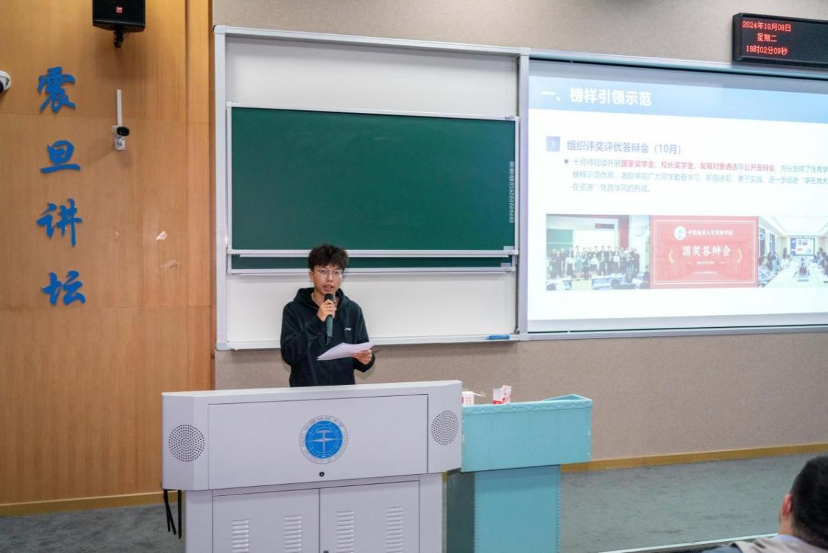 10月8日,古天乐太阳集团城举行“严在地大,学在资源”——2024秋季学期学风建设活动启动仪式,从榜样引领示范、学习能力培养、强化课堂管理、结对困难帮扶四个方面对学风建设活动进行介绍,现场宣读学风建设倡议书,学院党委副书记谭文伦、副院长李占轲参加并寄语同学们端正态度,规范行为,共筑优良学风。