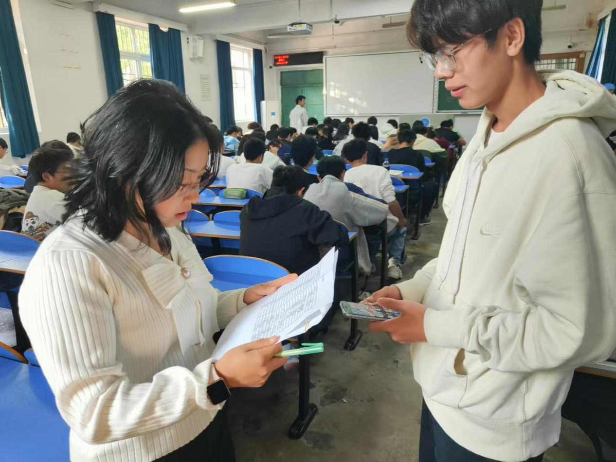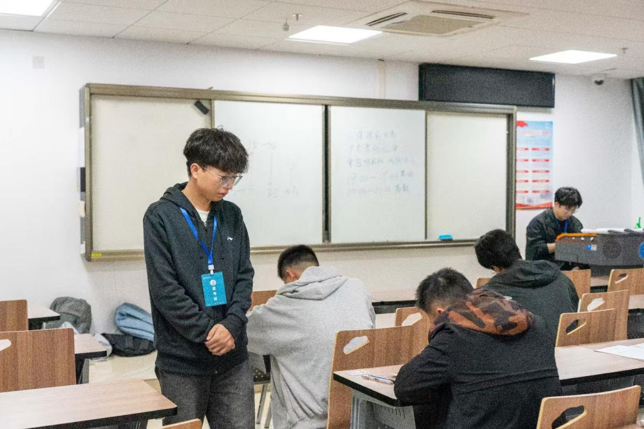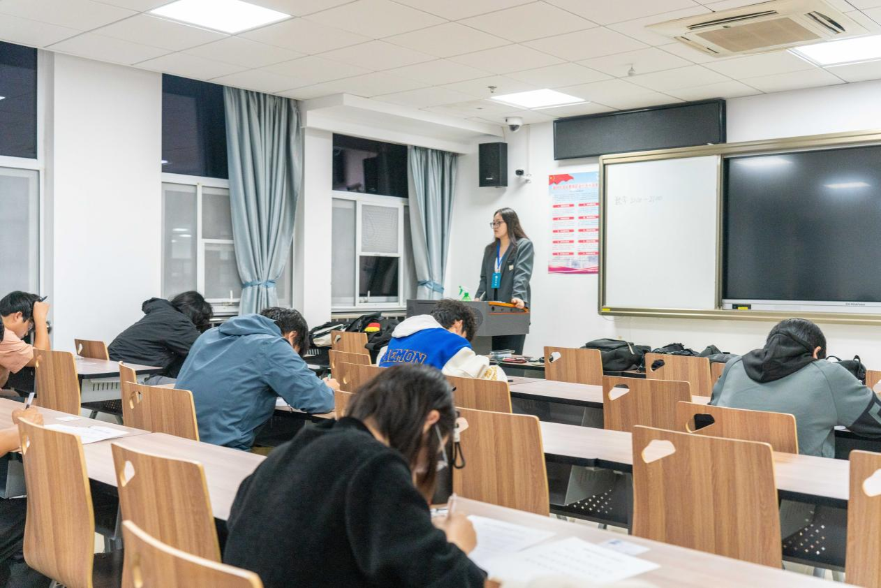 为检查和了解学生入学以来的学习情况,帮助同学们查缺补漏,11月3日晚,古天乐太阳集团城学生会学习部在东区教学楼组织2024级本科生第一次月考,助理班主任、驻班党员担任监考员,考试科目为高等数学和大学英语。