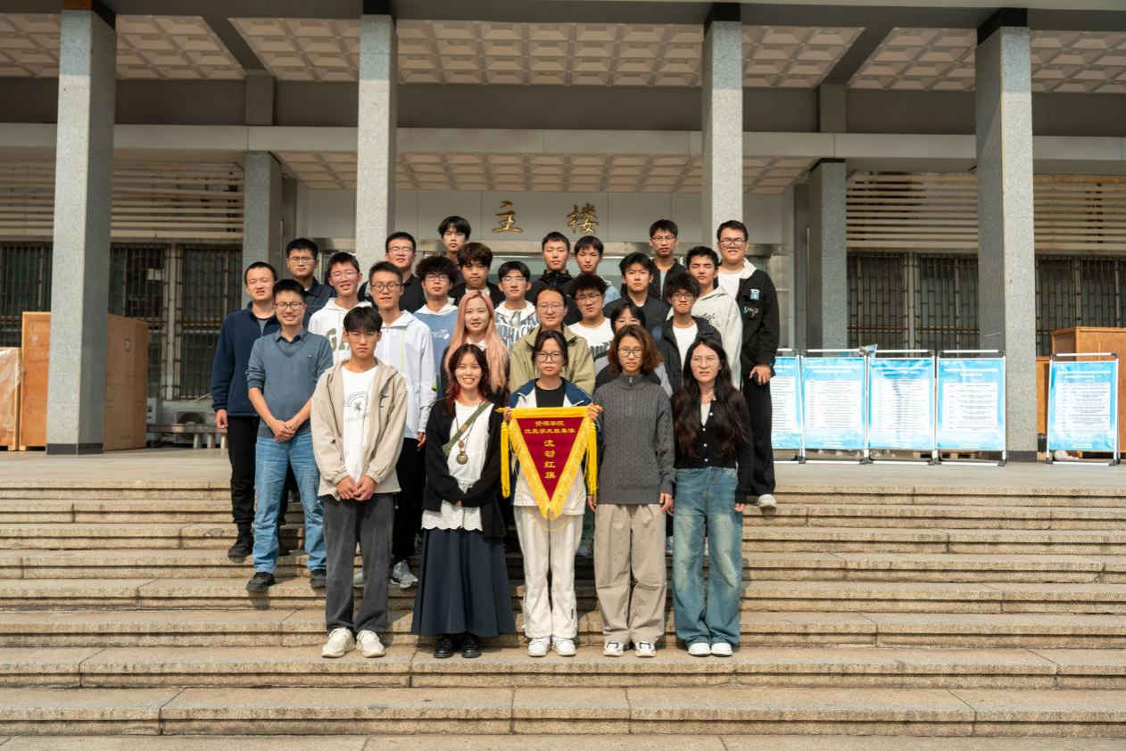 10月获评“优良学风班集体”流动红旗的班级师生合影