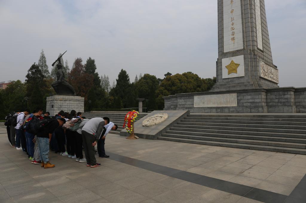 上午9时许,师生一行来到黄麻起义及鄂豫皖苏区革命烈士陵园。进入陵园,来到革命烈士纪念碑前,全体师生整齐列队,进行了庄严的纪念仪式。大家向革命烈士进献花圈,三鞠躬,并重温入党誓词。响亮的誓言传递着党员同志对革命烈士深深的敬意。