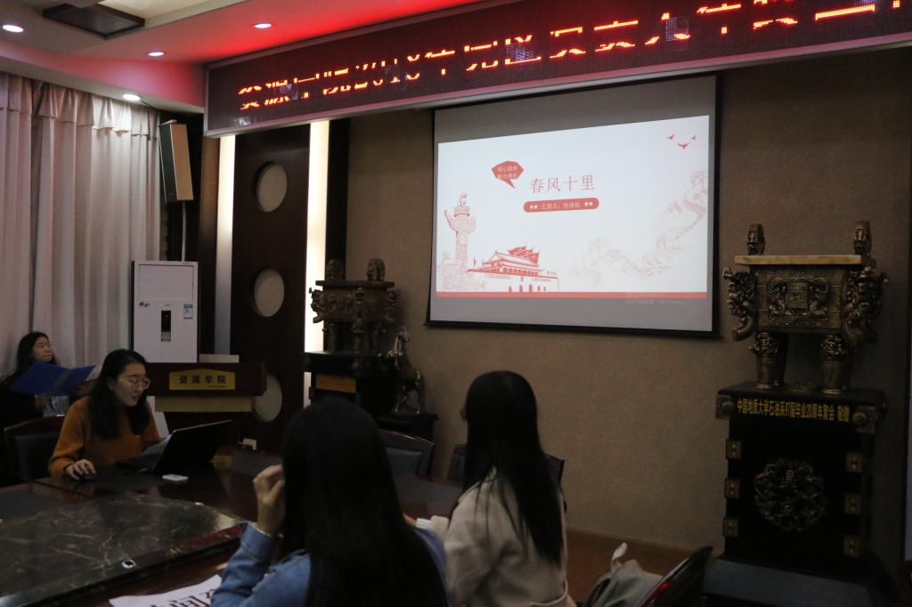 首先,主持人李沛瑾简单介绍了本次活动的评委老师及基本流程,随后各位党区负责人开始进行答辩。他们分别从思想建设、班级建设、支部建设、不足与展望等方面介绍了自己与班级的成长故事。020171班党区负责人杜诗琰以“用心陪伴,助力成长”为主题,将她与020171班同学“美丽的相遇”“渐渐的关心”“慢慢的走近”的故事分享给在场的同学。春风十里是她对同学们的期许,如沐春风是同学们对她的喜欢。在一次次交心谈心时,一次次活动参与中,一次次学习辅导后,杜诗琰成为了班里的同学最信任的人。杜诗琰的精彩答辩和深情流露赢得了老师和同学们的一致好评,会场响起阵阵掌声。PPT展示过程中能,党区负责人还介绍了他们向班级同学分享学习经验,深入宿舍交流,有针对性的谈心谈话等工作。