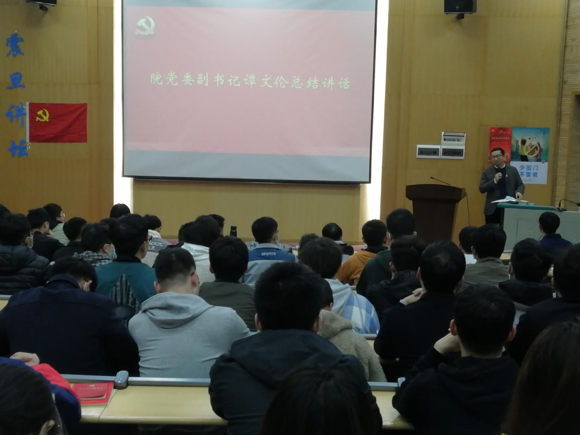 霍少孟作了学院学生党建工作报告。他介绍了学院学生党建工作整体概况、运行机制,通报了学生党支部党史学习教育进展和学生党员岗位设定情况,指出了学生党建工作取得的基本成效和当前存在的问题。他重点结合“五个到位”和“七个有力”,详细介绍了学院党委着力“五个聚焦”打造高质量党建工作体系的总体思路和建设方案,解读了学生党建“三三三三”建设机制即通过推进“三大工程”、构建“三大体系”、打造“三支队伍”、培育“三种文化”,进一步强化党支部政治功能,全面推进标准化、制度化建设,结合学科学院学生实际培育党建特色品牌项目,进一步激发学生党支部的战斗堡垒作用和学生党员的先锋模范作用。