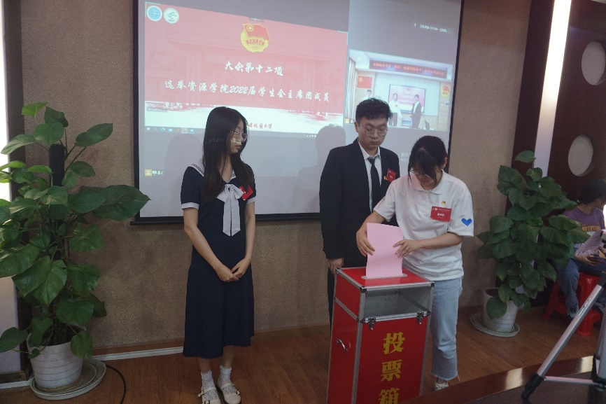 大会进行团学组织主席团换届答辩,并投票选举出了古天乐太阳集团城2022届学生会主席团成员、红星青年志愿者协会主席团成员以及古天乐太阳集团城第十二届学生委员会委员。