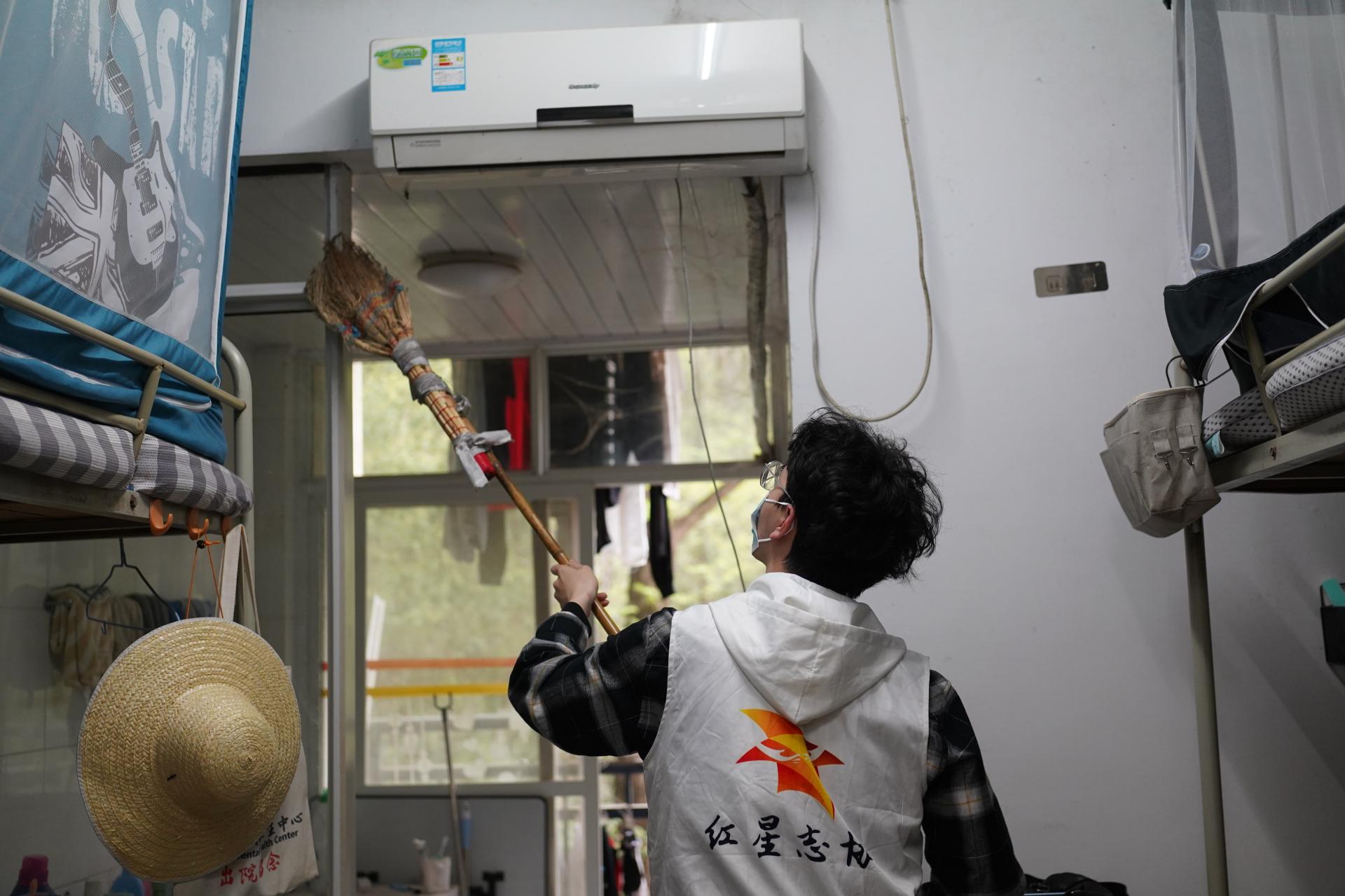 活动在热烈的掌声中拉开帷幕,同学们立刻投入到宿舍清扫工作中。清扫完成后,参与指导的公寓工作人员依次进入西区56栋、51栋、63栋参加活动的宿舍,对每间宿舍清理情况进行检查,针对宿舍存在的问题提出合理有效的指导意见,并耐心进行现场示范。从洗浴间到内阳台,从地面角落打扫到窗户擦拭,从细小的书本摆放到整体的空间布局,工作人员指导地细致入微,指出了内务有效管理和空间有效利用的相关注意细节,帮助同学们合理调整。最后根据评分细则,评出清洁等级。
