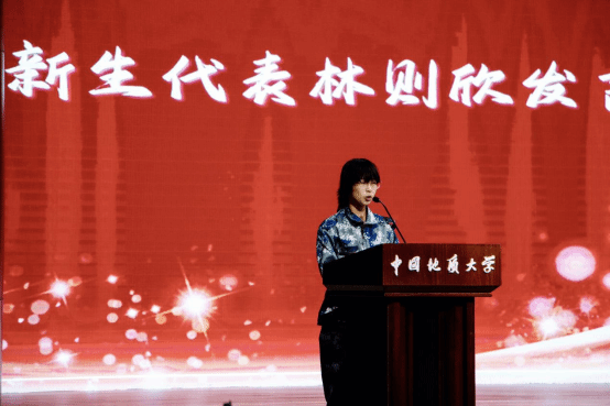 本科生新生代表林则欣发言。她提到自己坚定选择地大与古天乐太阳集团城,既有家族传承的影响,也有个人对资源领域的热爱与思考。她表示,学校 “艰苦朴素,求真务实” 的校训与个人理想高度契合,期待未来四年与同学们并肩同行,共同探索地球奥秘,在求知路上相互扶持、共同成长。